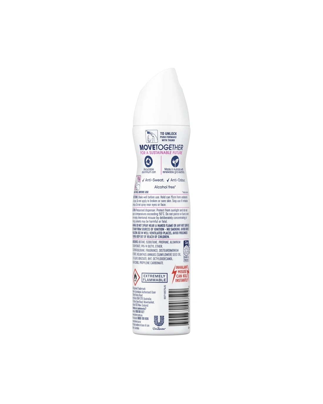 As part of our efforts to move together for a sustainable future, we're increasing our use of reusable materials and making it easier for you to recycle our packaging. Our deodorant spray is made in Australia with renewable grid electricity and comes in a recyclable aluminium can - please recycle when empty.