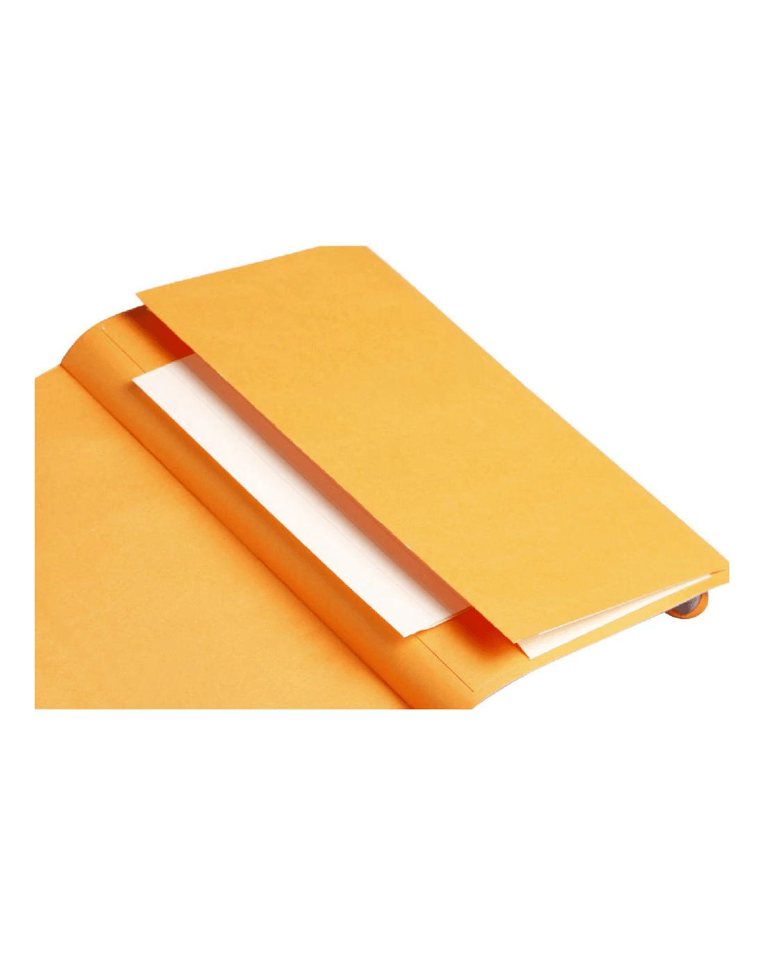 - There is a gusseted cardboard envelope in the rear cover for holding receipts.