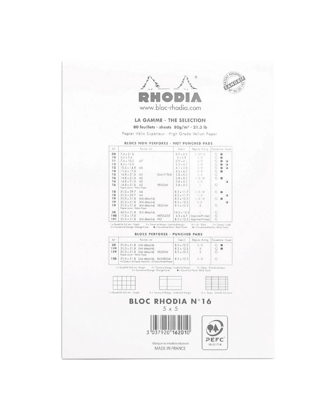 Rhodia No. 16 Grid Ruled A5 Notepad White 80 Sheets