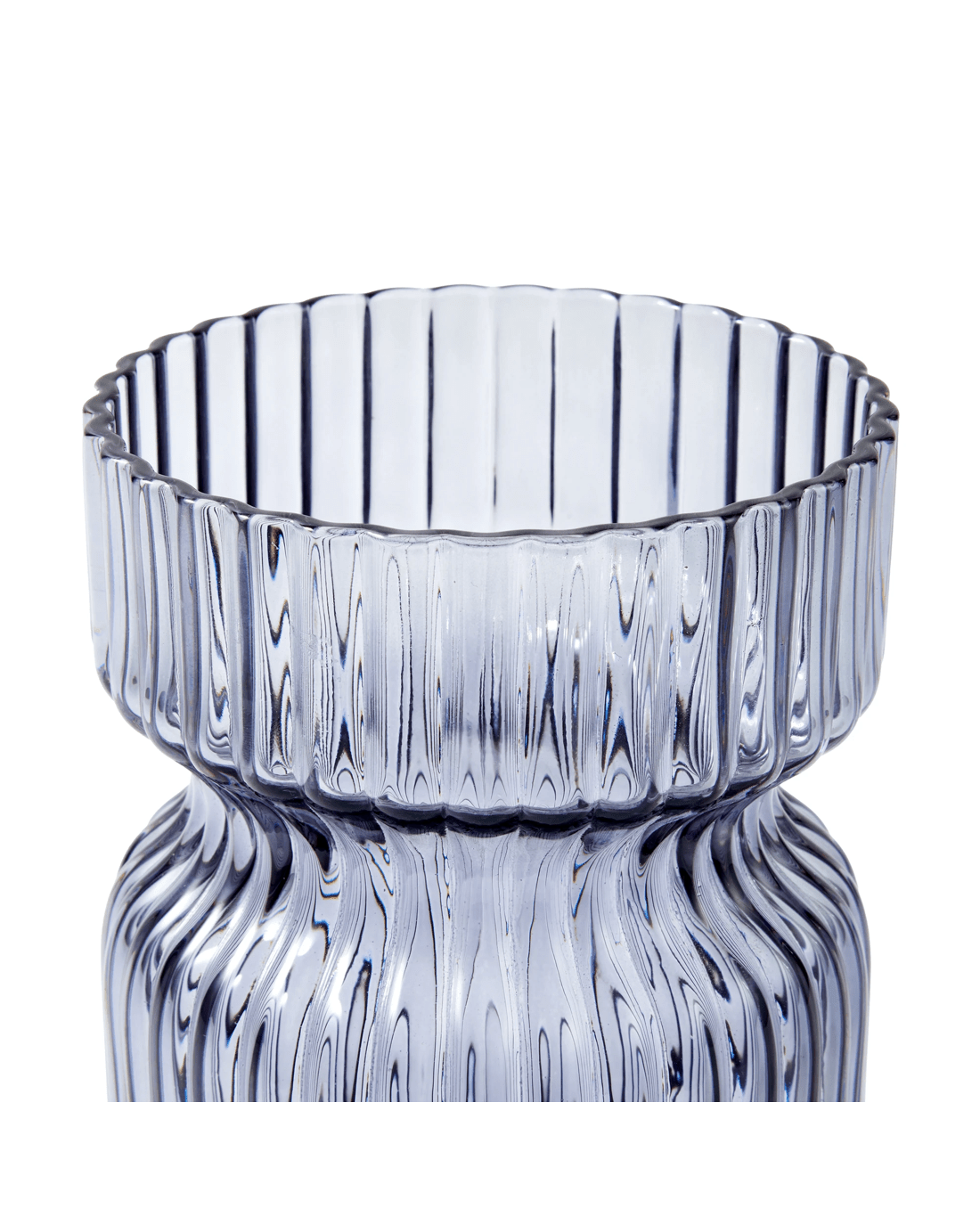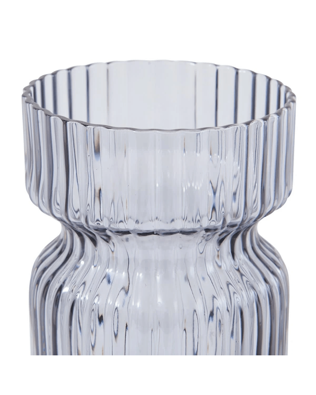 A sleek and elegant Ribbed Black Glass Vase, designed to complement any modern interior. Its timeless design adds a touch of sophistication to any space.