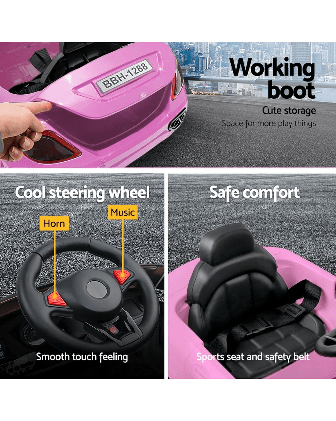 Rigo Kids Electric Ride On Car Toys Cars Headlight Music Remote Control 12V - Pink