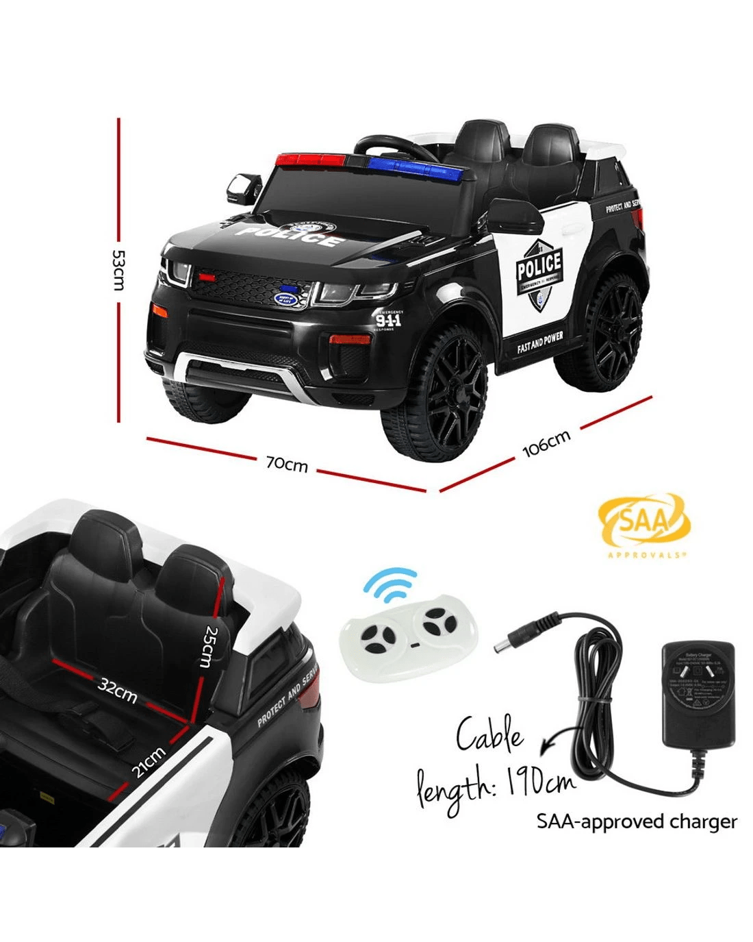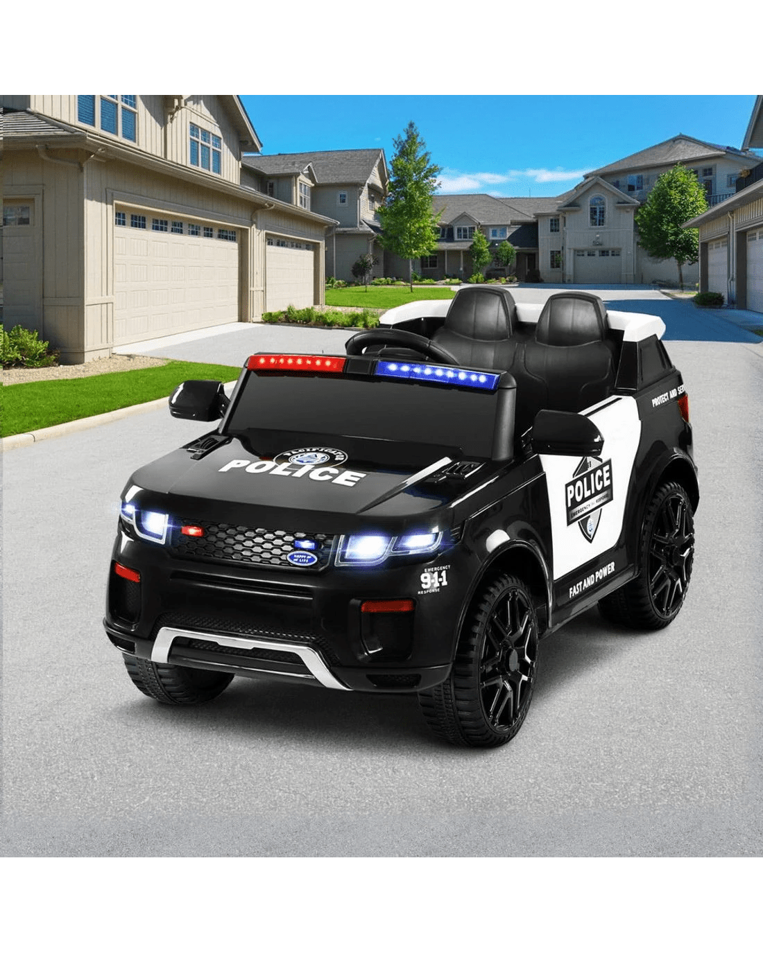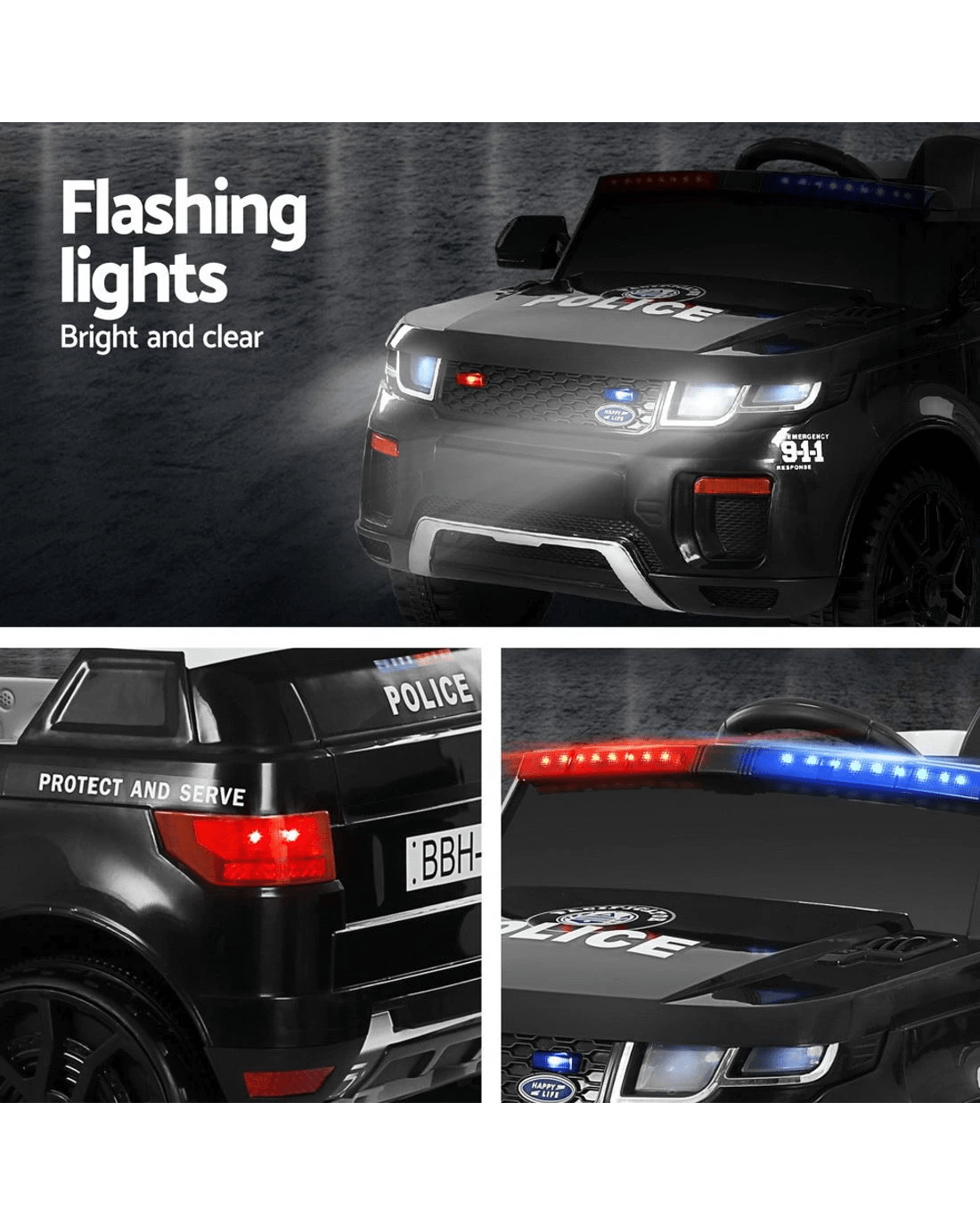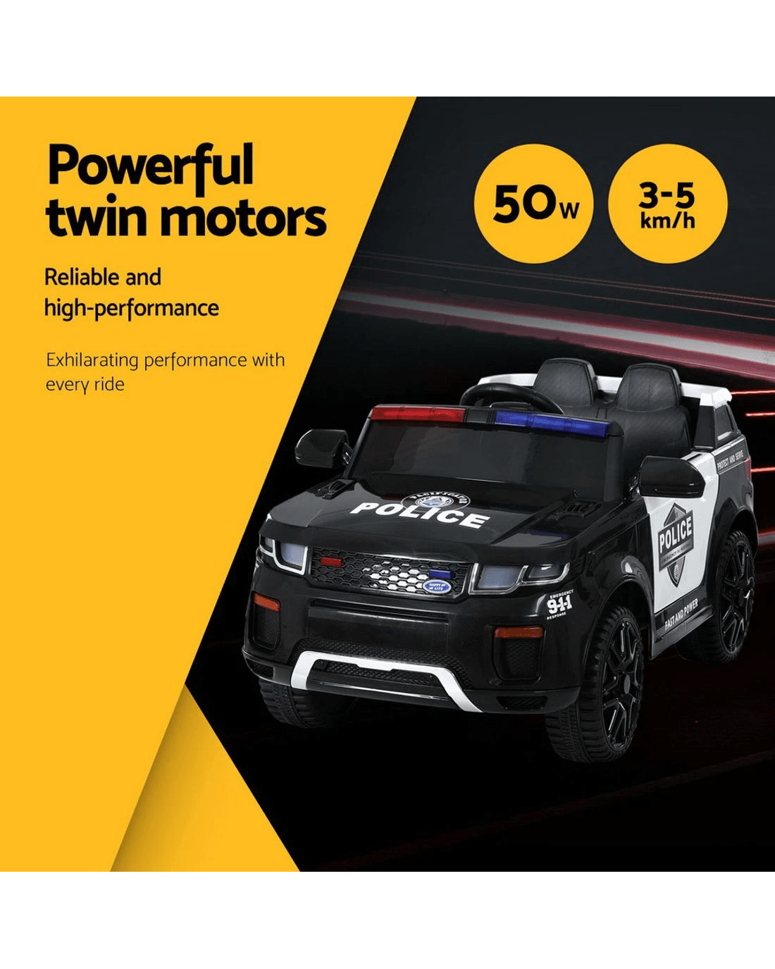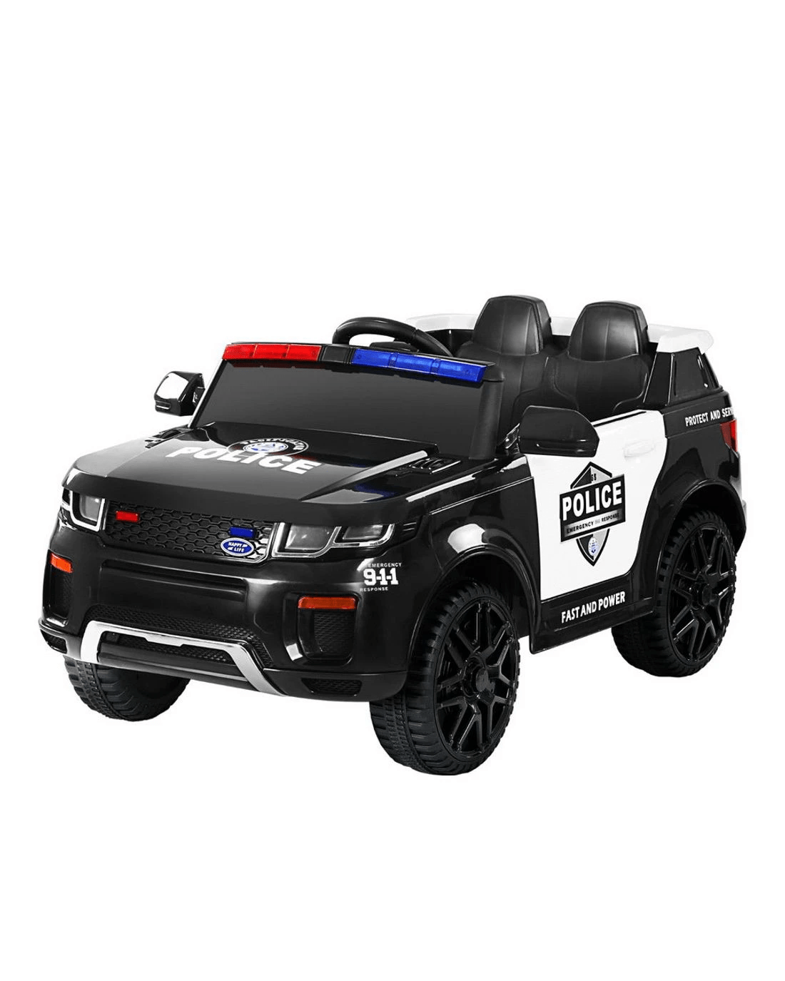 Rigo Kids Electric Ride On Patrol Police Car Horn Music Remote - Black