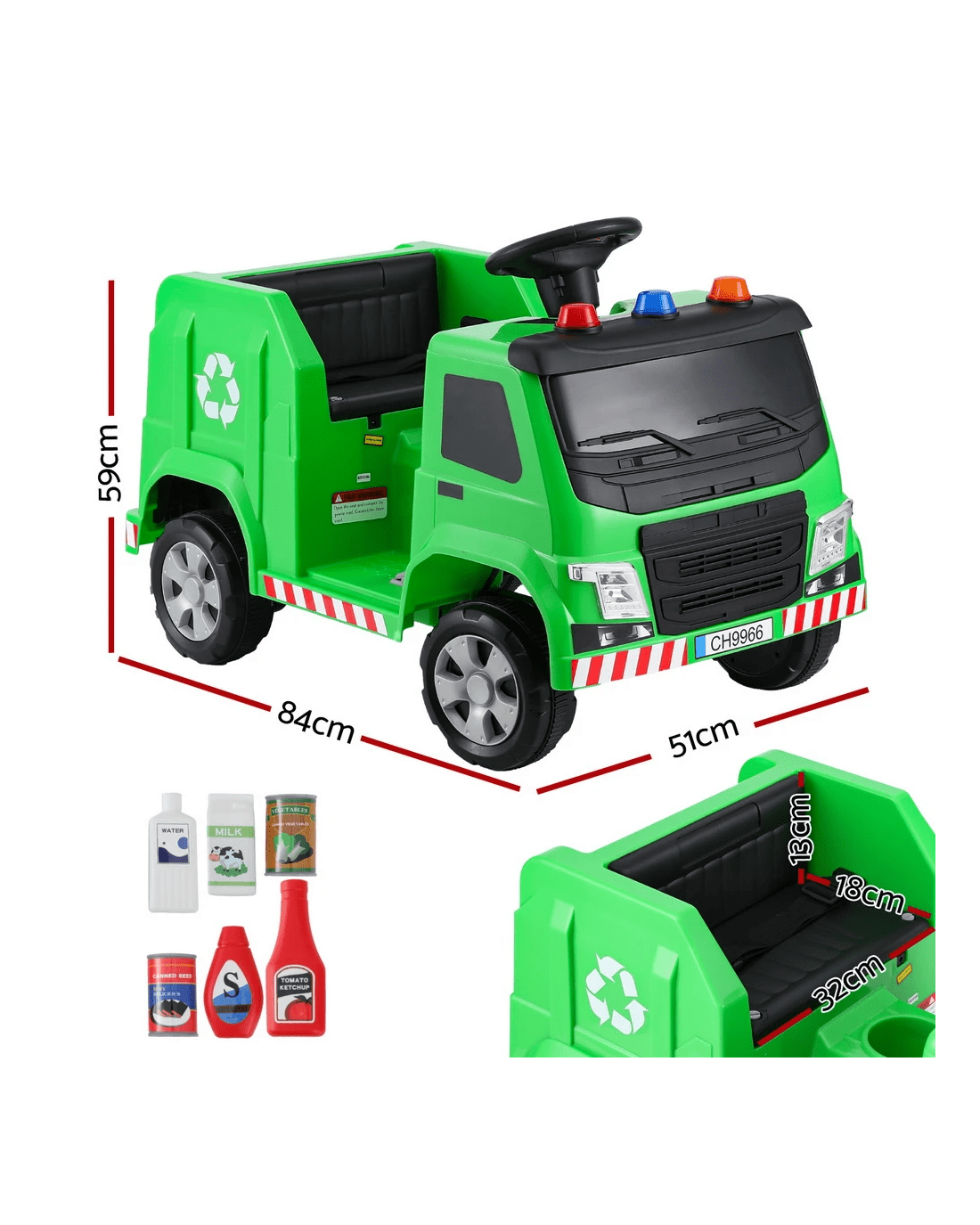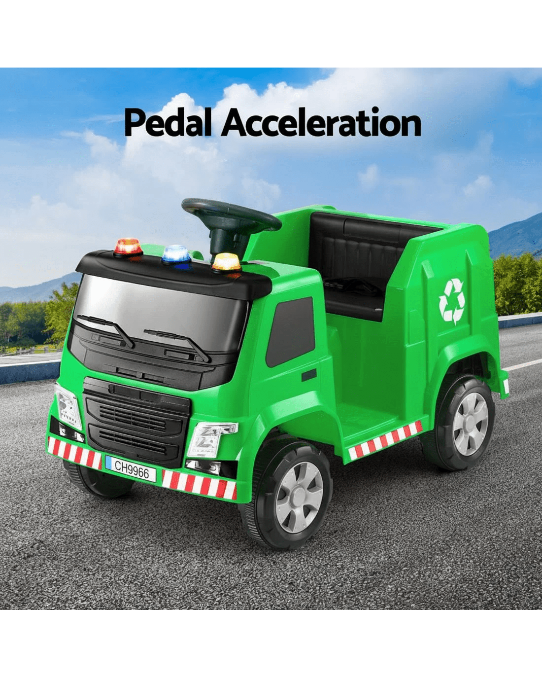 Rigo Kids Ride On Car Garbage Truck Police Light 12V Electric Toys Cars - Green