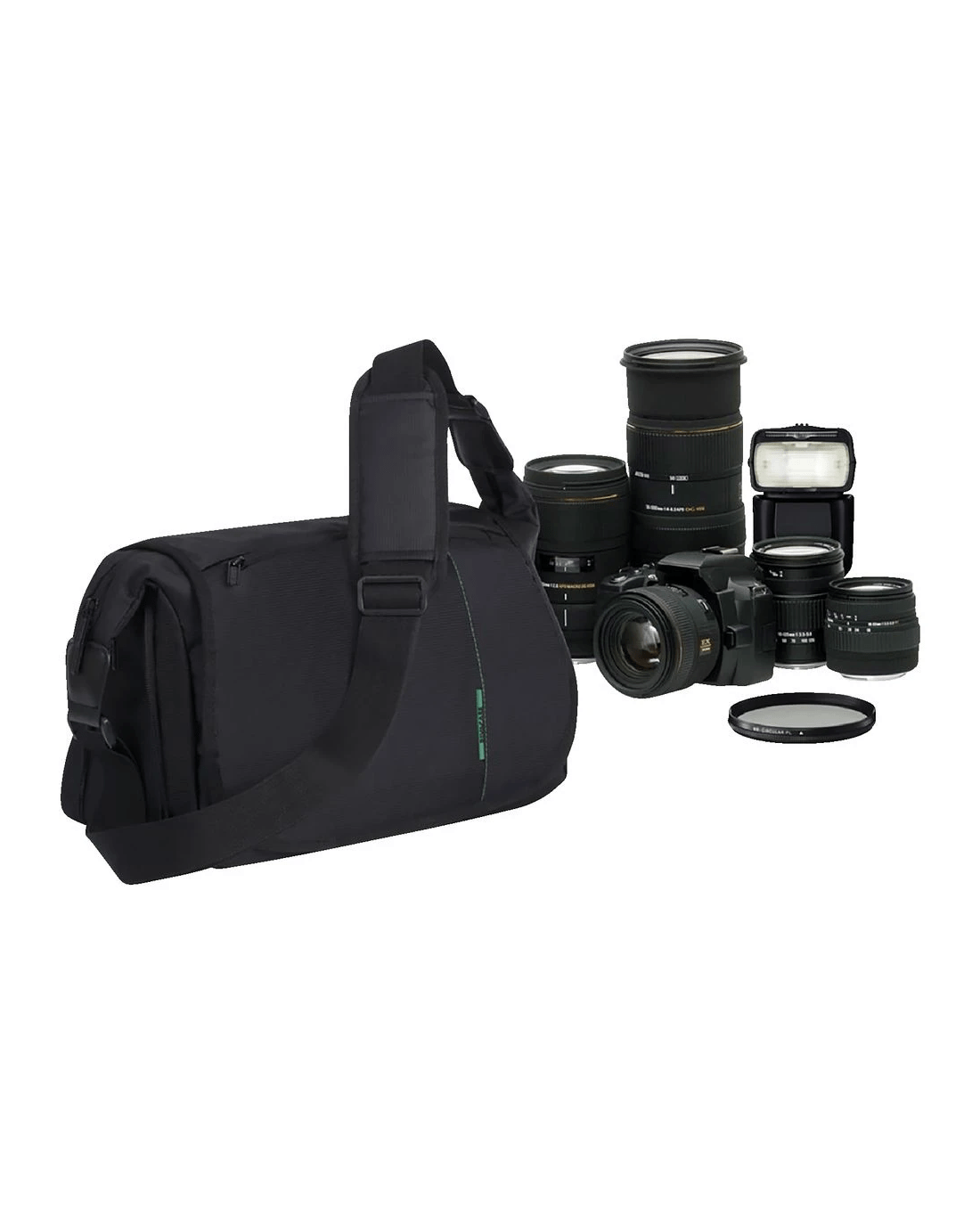 This Rivacase DSLR Bag is designed to fit your DSLR Camera, and has a tablet compartment for taking your technology on the go. It has a stylish lining made of velour so it doesn't scratch your lenses, and adjustable dividers to accommodate your setup. It also has internal and external pockets for keeping your accesories safe.