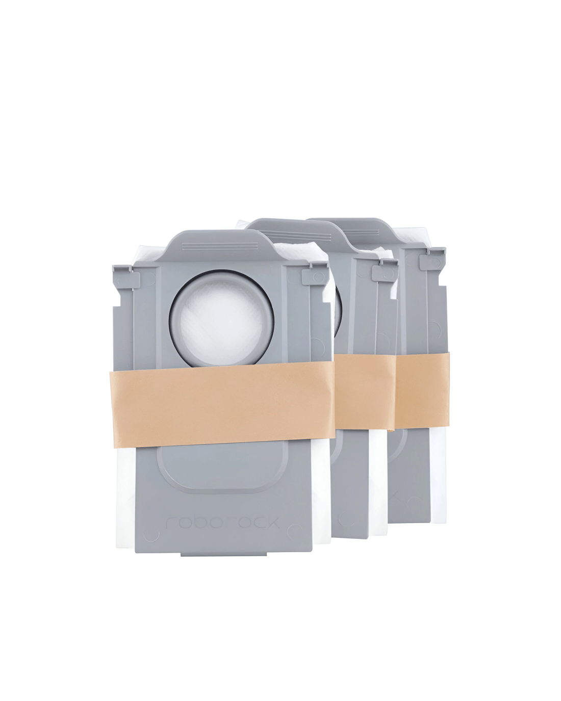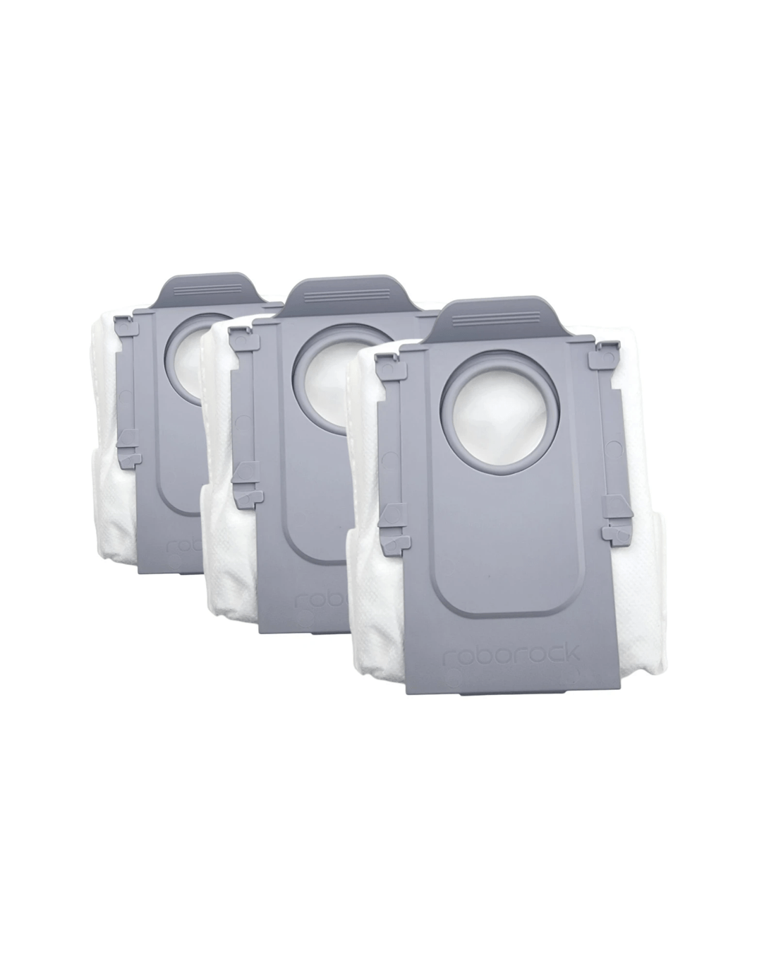 This packet contains three genuine Roborock disposable dust bags, designed to fit multiple models within the S, Qrevo, and Saros series of robot vacuums. These dust bags are easy to install and feature a self-sealing mechanism to ensure mess-free disposal of dust and debris once they are full.