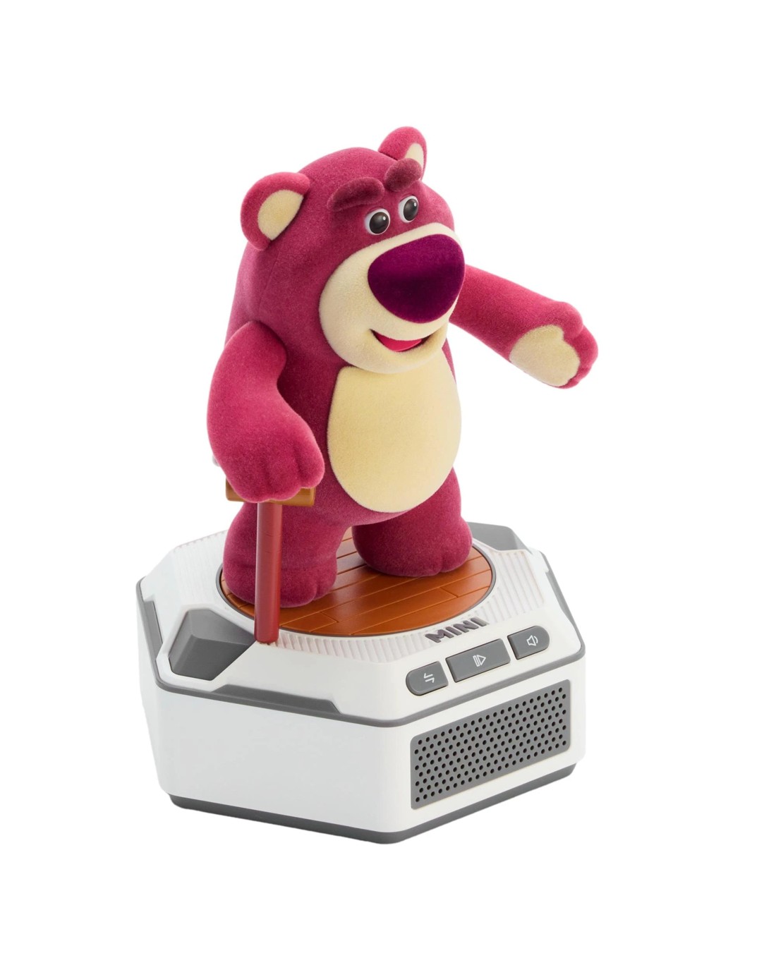 Experience the perfect blend of nostalgia and innovation with Lotso, the smart robotic mate from Disney and Pixar's Toy Story. Created by Robosen, this interactive companion combines advanced robotics with delightful sensory details for an unforgettable playtime. Crafted with a soft flocked exterior and infused with his signature strawberry scent, Lotso feels and smells just like the beloved character. He moves, and speaks classic phrases such as "Well, hello there. I thought I heard new voices " and "You got a lot to look forward to, folks. The little ones love new toys."  With Robosen's intuitive programming, you can guide Lotso on custom adventure! Perfect for Lotso fans, future innovators, and Toy Story fans of all ages, this smart robot blends high-tech play with warm companion.  Bring home Lotso by Robosen—where cuddly charm meets cutting-edge technology.