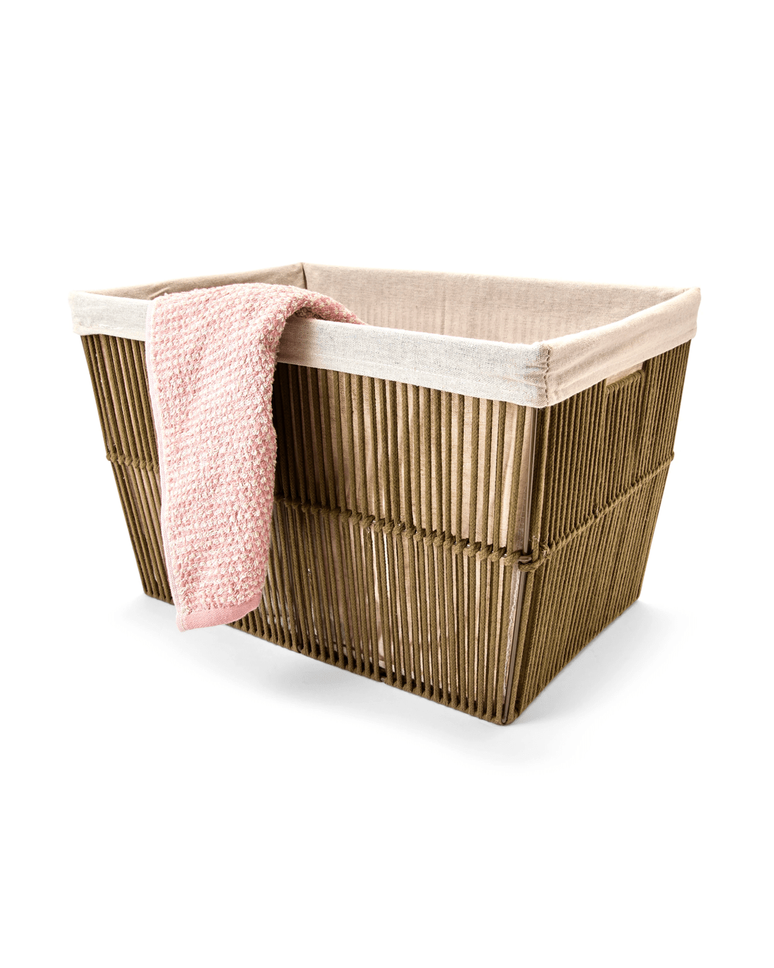 Keep clutter at bay with this chic Rope Rectangle Basket. The woven texture adds a touch of natural elegance, while the removable liner makes laundry day a breeze.