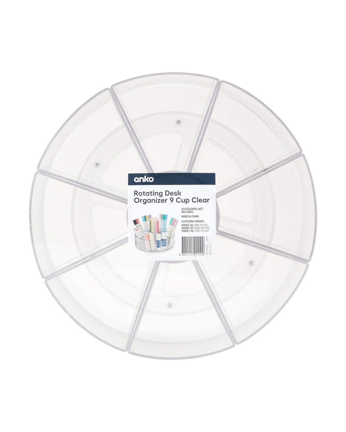 Spin your stationery into style and order with this Rotating Desk Organiser 9 Cup, which brings a splash of fun to any workspace or study table. With nine clear cups ready to hold stationery, art supplies or travel essentials, it's a cheerful companion for keeping bits and bobs beautifully in place.