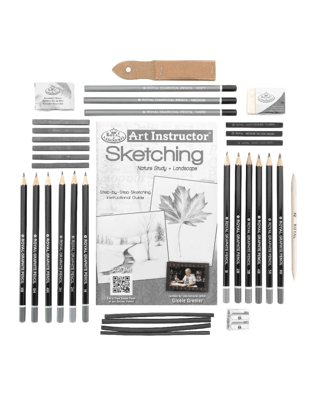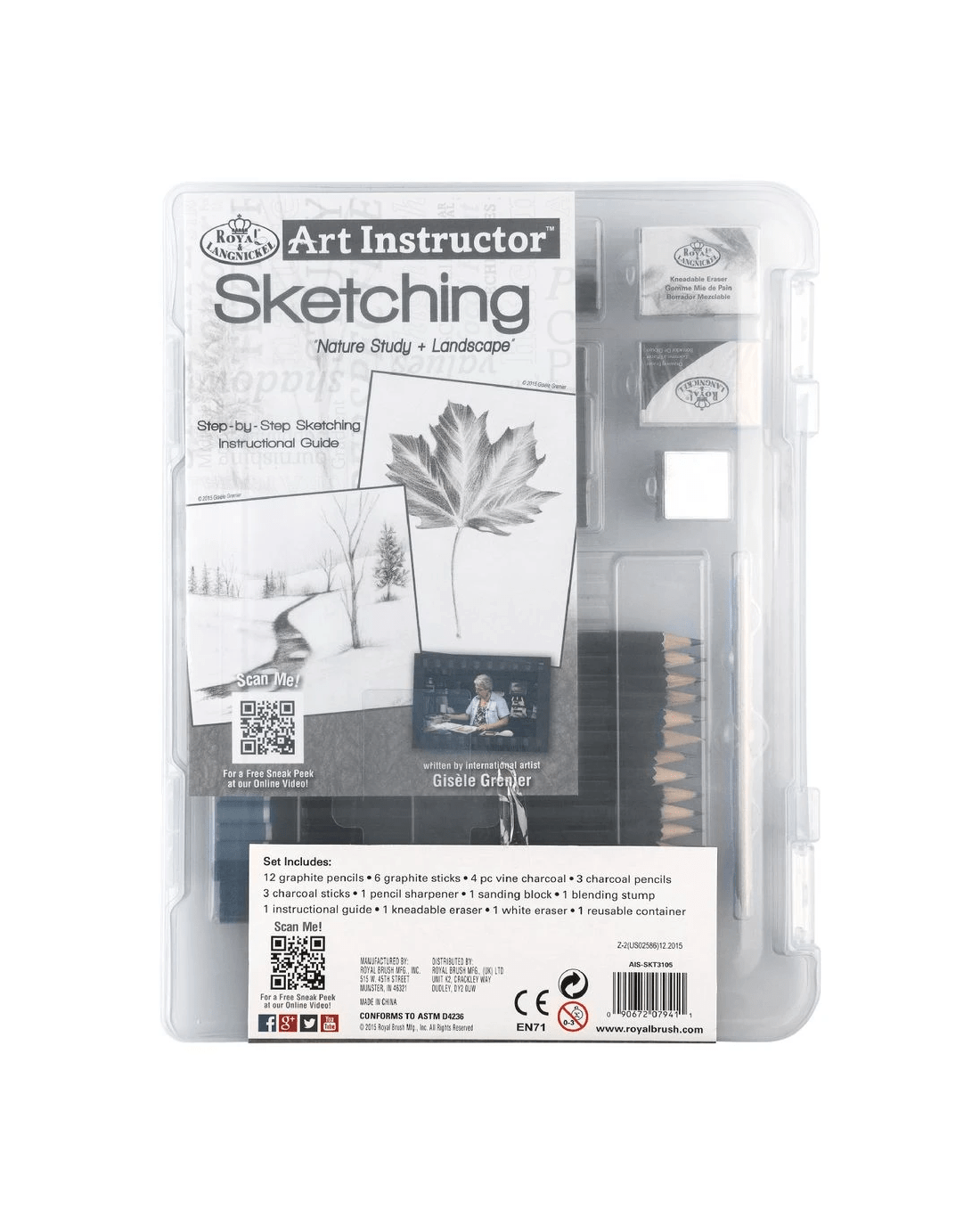 This Royal & Langnickel Sketching Art Set comes with everything you need to sketch and draw. It contains a variety of pencils in different lead grades, charcoal, different erasers, a sharpener and more.
