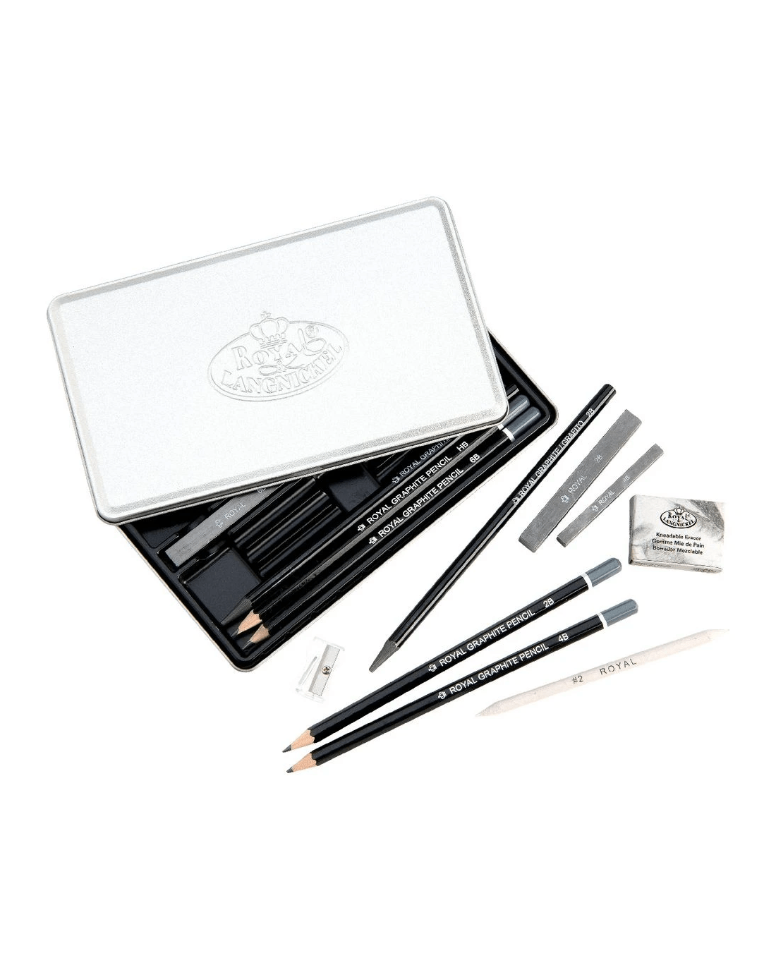This Royal & Langnickel Sketching Set gives you everything you need to start on your drawing journey, all within a convenient tin that you can carry with you on the go. With the included pencils of different grades and charcoal, you can explore the mediums that work best for you and your artwork. Plus, with a smudging stump, kneadable eraser and sharpener, you're all set for your next sketching field trip.