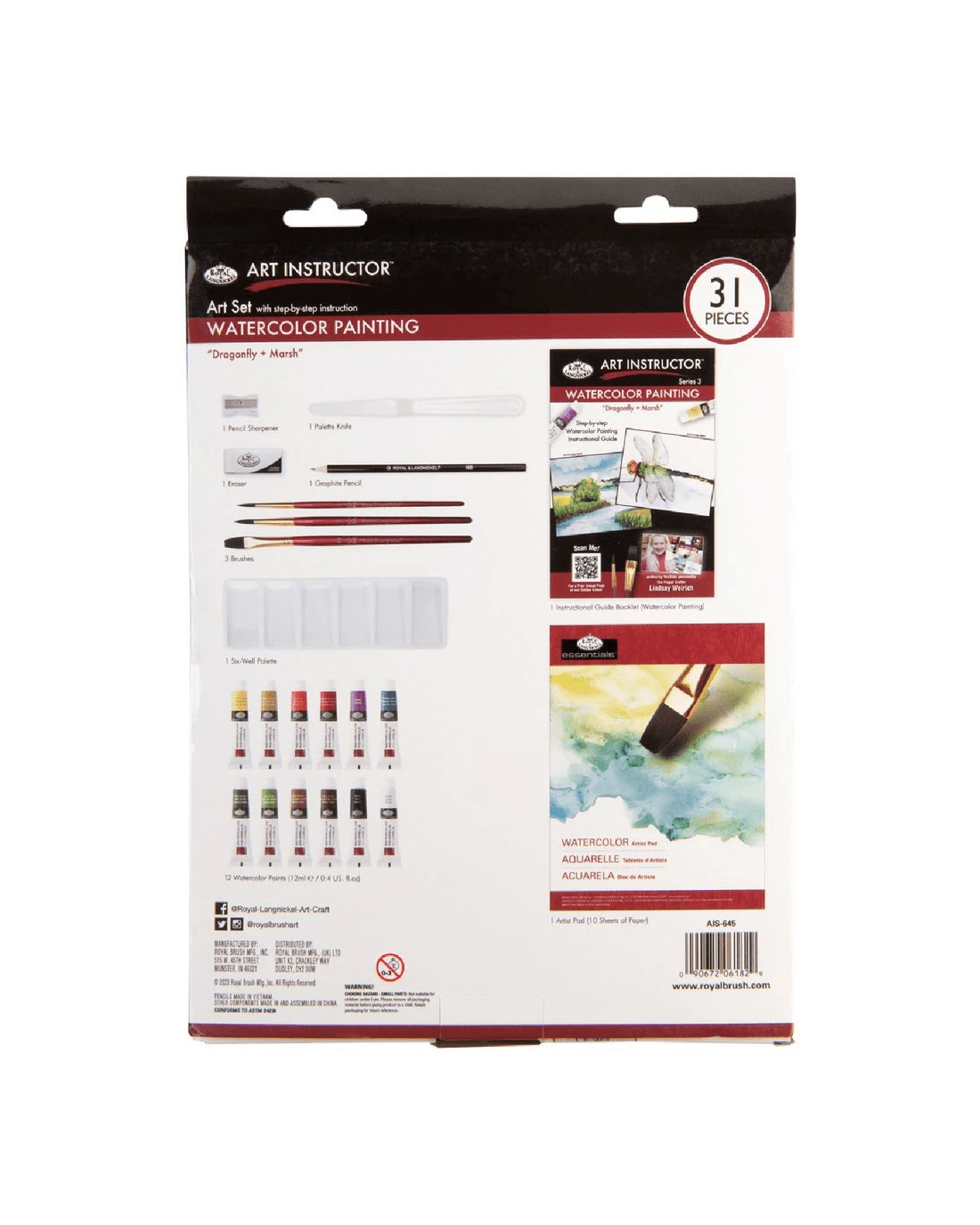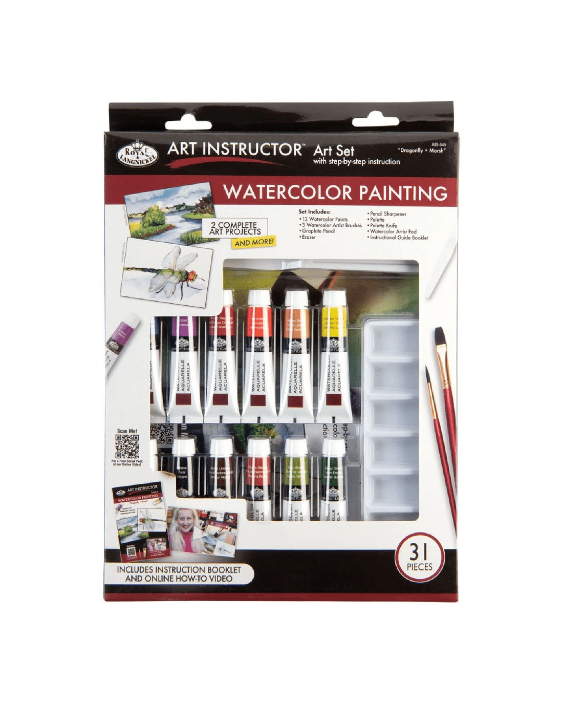 This Royal & Langnickel Art Set has everything an aspiring artist needs. It provides a generous variety of watercolour paints, brushes and more so you can start painting and develop your artistic talent in a new medium. The included instruction booklet and online how-to video will give you a head start on building your painting style.