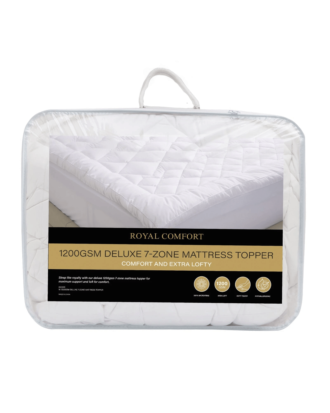Royal Comfort 1200GSM Deluxe 7-Zone Mattress Topper Luxury Gusset Breathable - Double Bed - White