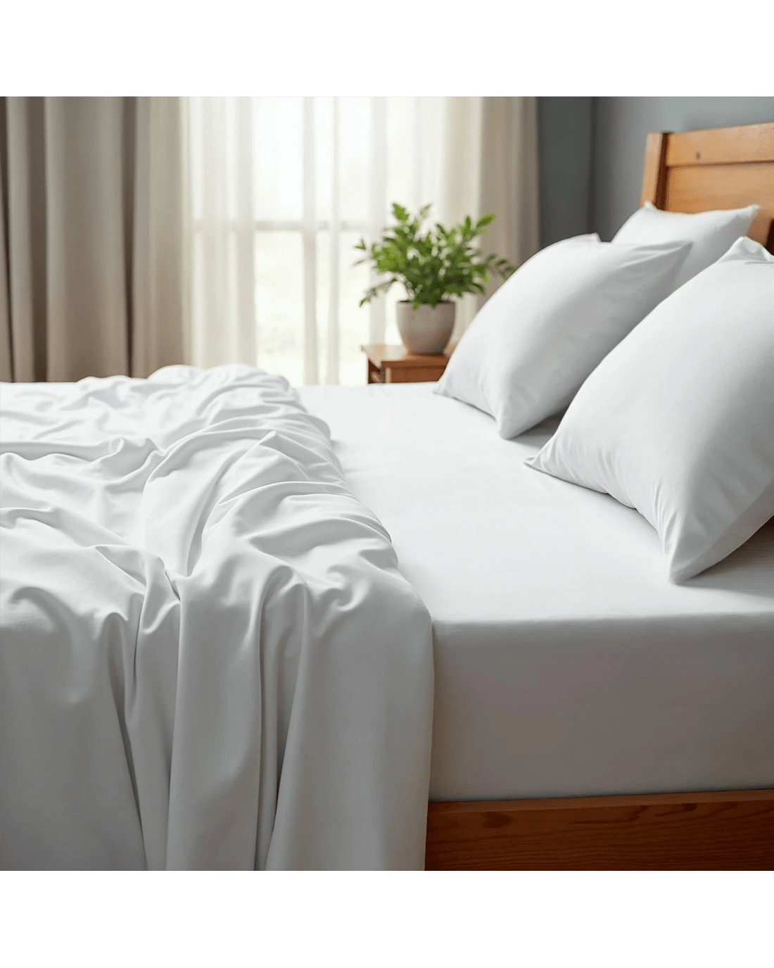 Made from a 30% bamboo and 70% microfibre blend, this sheet set is soft, lightweight, and breathable for year-round comfort. The fabric’s moisture-wicking and thermo-regulating properties help maintain a comfortable temperature, keeping you cool in summer and warm in winter.