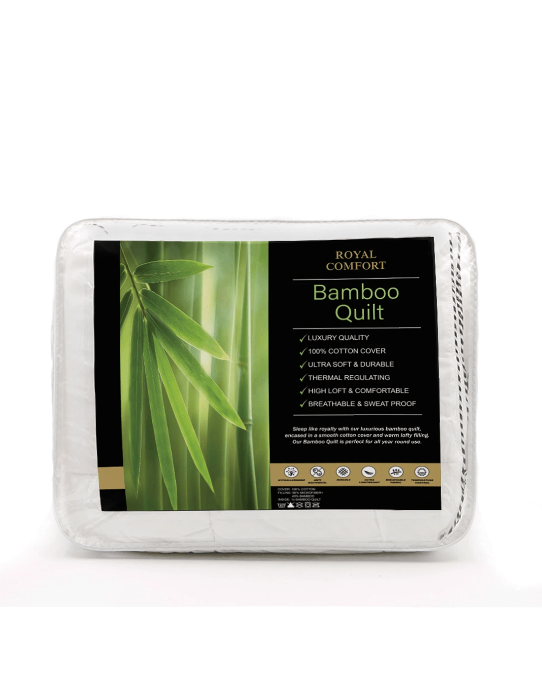 Royal Comfort Bamboo Blend Quilt 250GSM Luxury Duvet 100% Cotton Cover Queen - White