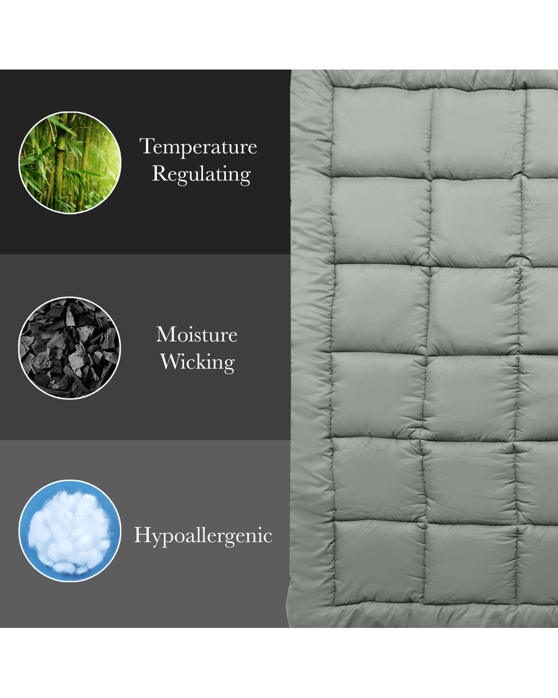 The charcoal bamboo blend mattress topper is a suitable choice for people with allergies or those who want to regulate their body temperature while they sleep.