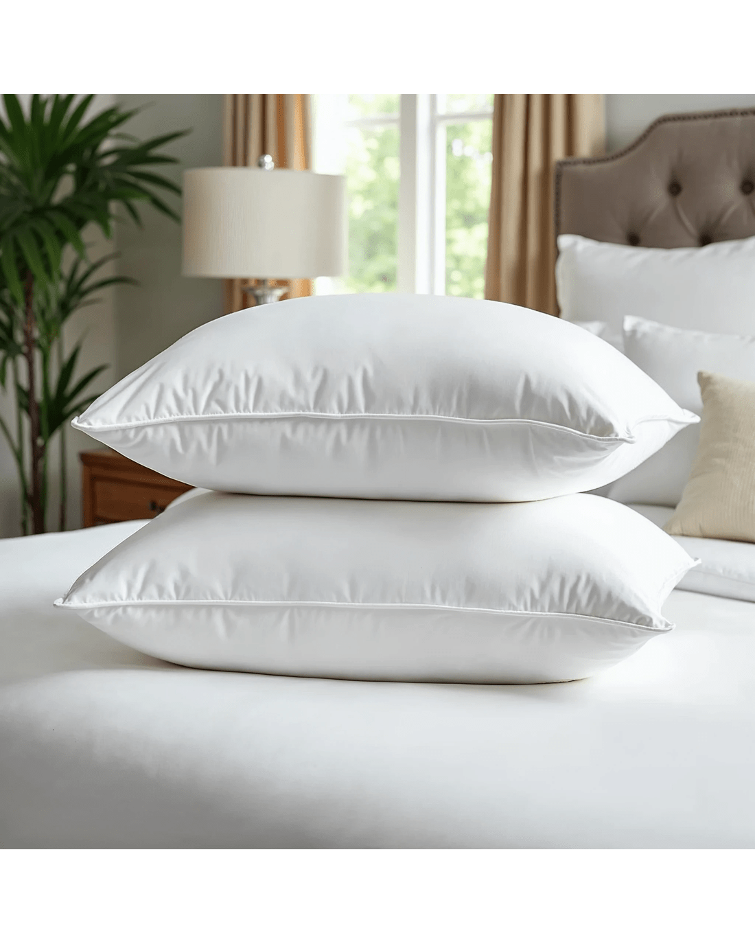 Finely crafted, these pillows are filled with a premium 1000GSM, 95% White Duck Feather and 5% Duck Down blend, and these pillows are encased in a finely sewn, silky soft, 100% 233 thread count pure cotton cover that is double-stitched to ensure both longevity and, at the same time, provide additional support.