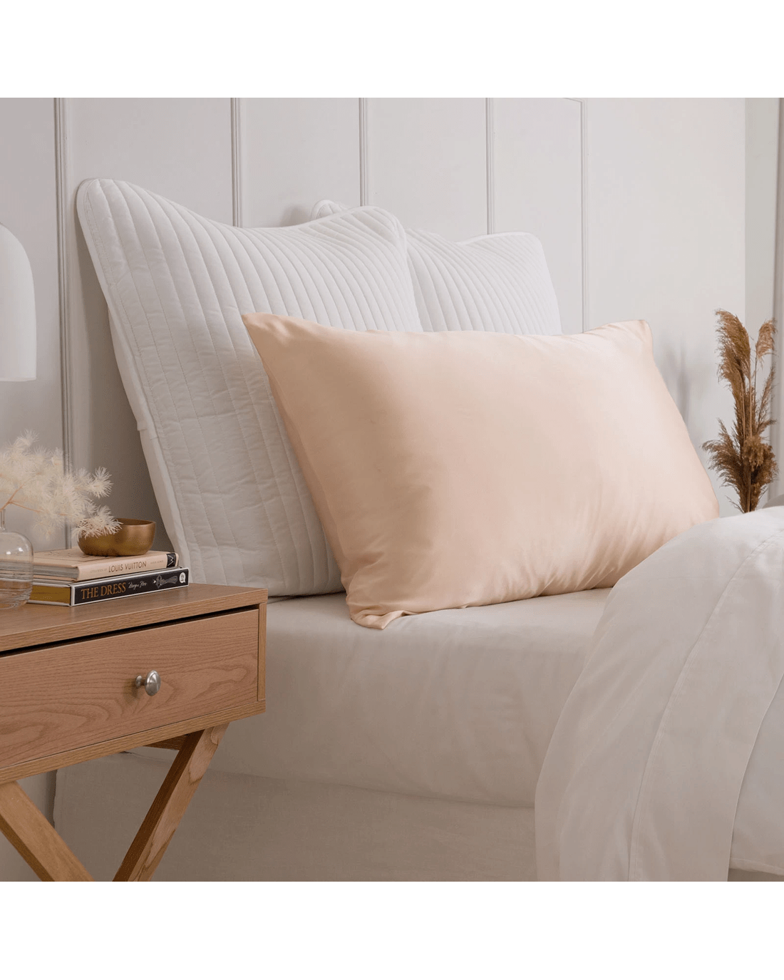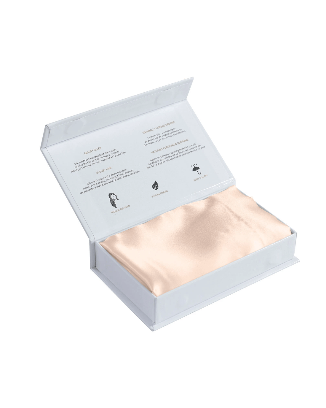 Made from 100% pure mulberry silk, this pillowcase offers a smooth, soft surface that is gentle on the skin and hair. The natural silk fibres help regulate temperature and reduce friction, promoting a comfortable and refreshing sleep.