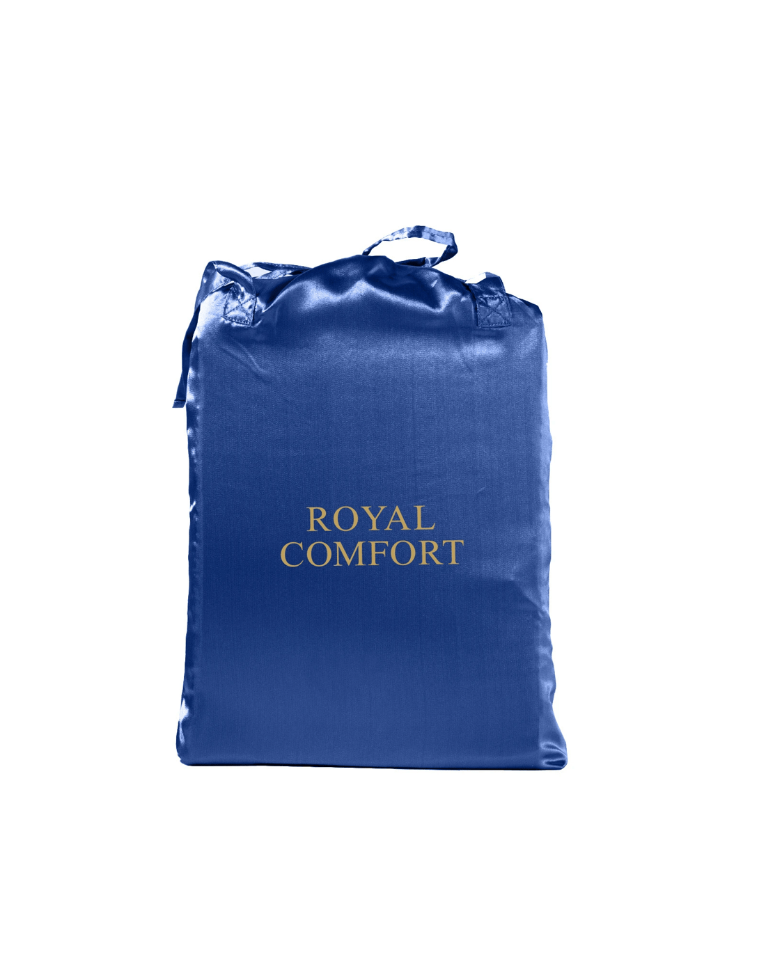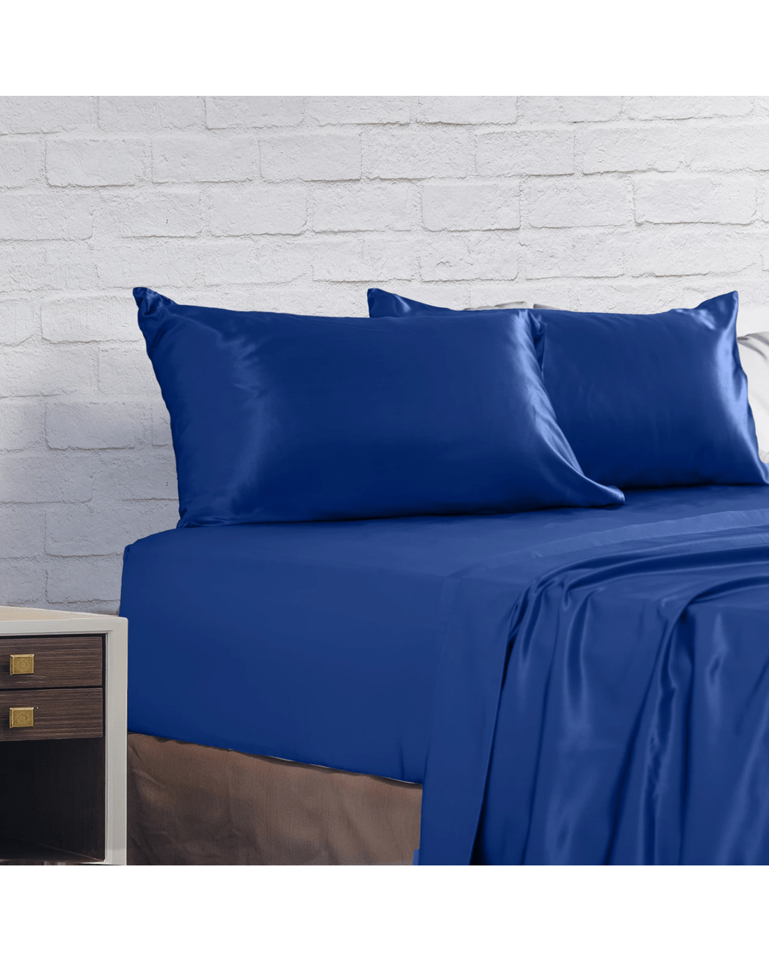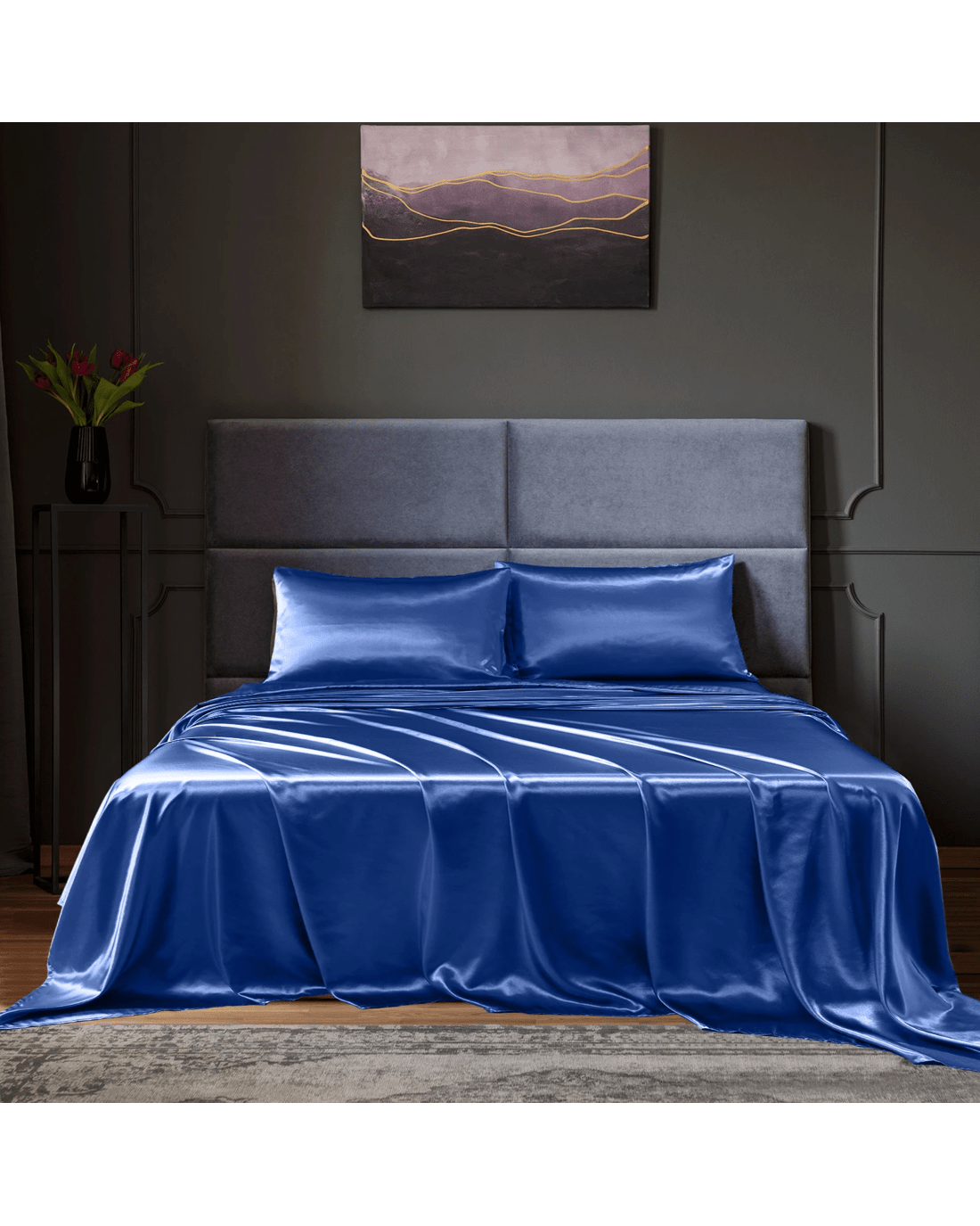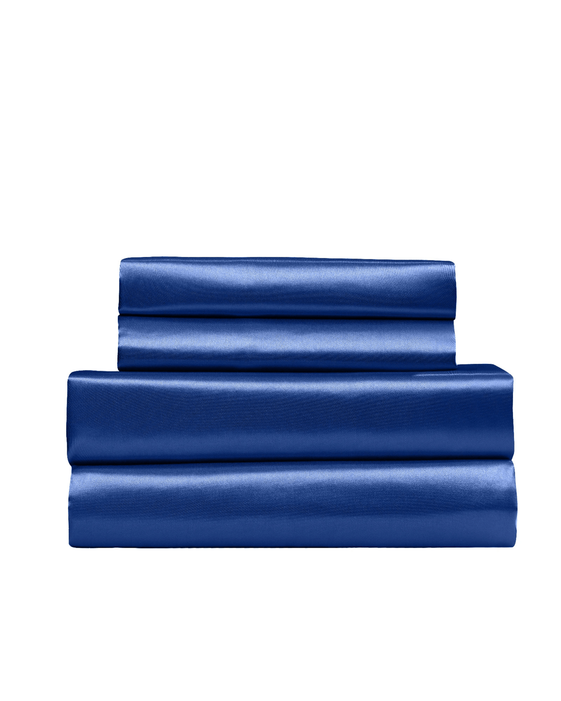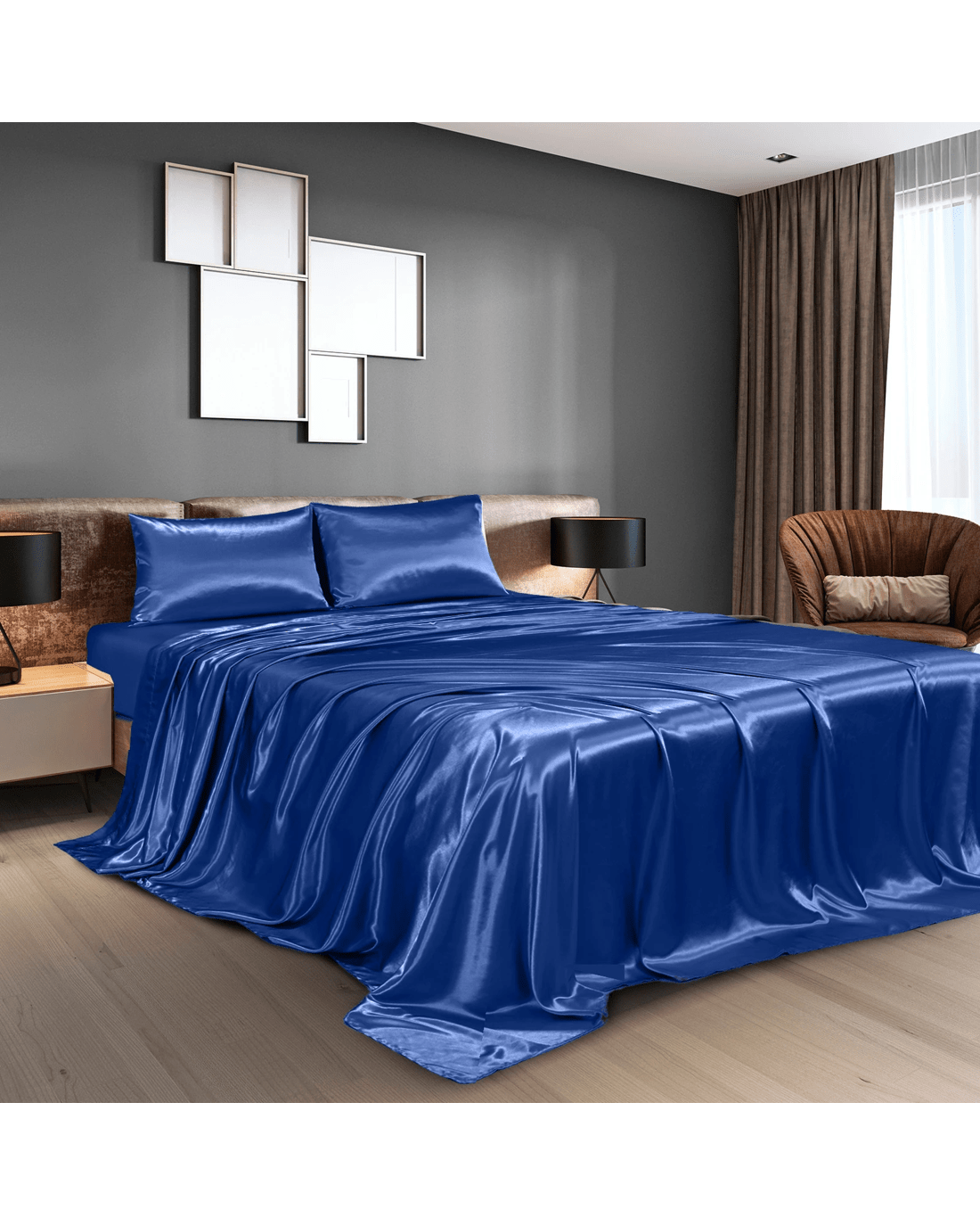 Royal Comfort Satin Sheet Set 4 Piece Fitted Flat Sheet Pillowcases Silky Smooth - King Bed - Blue