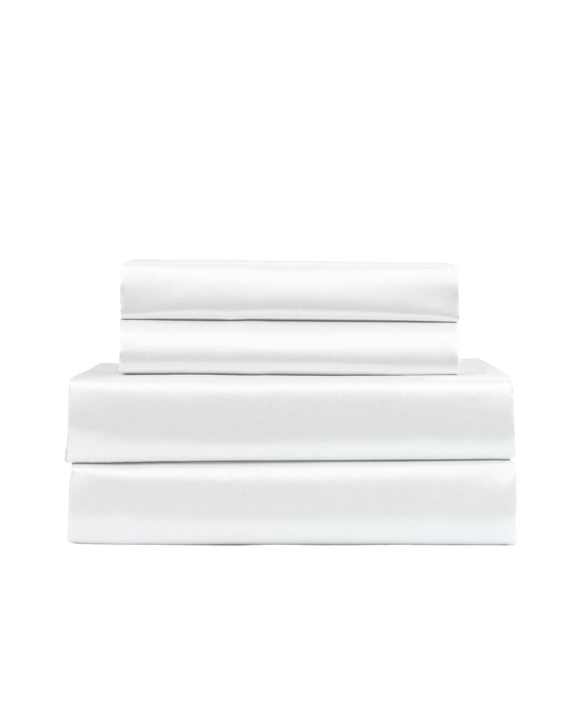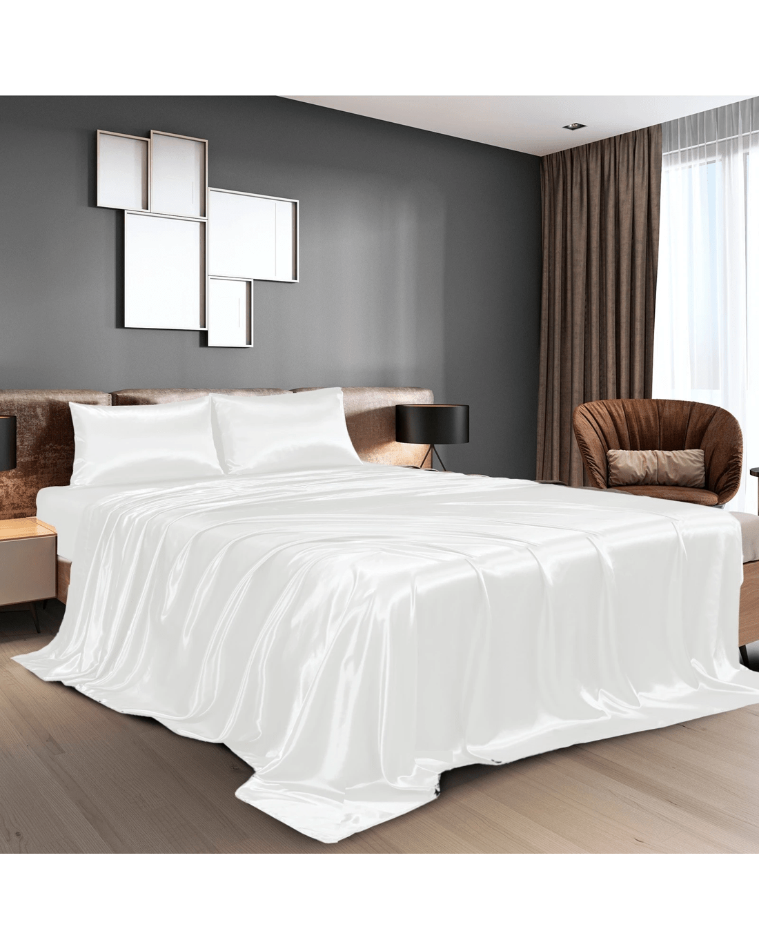 Sold by ABM GlobalRoyal Comfort Satin Sheet Set 4 Piece Fitted Flat Sheet Pillowcases Silky Smooth - King Bed - White