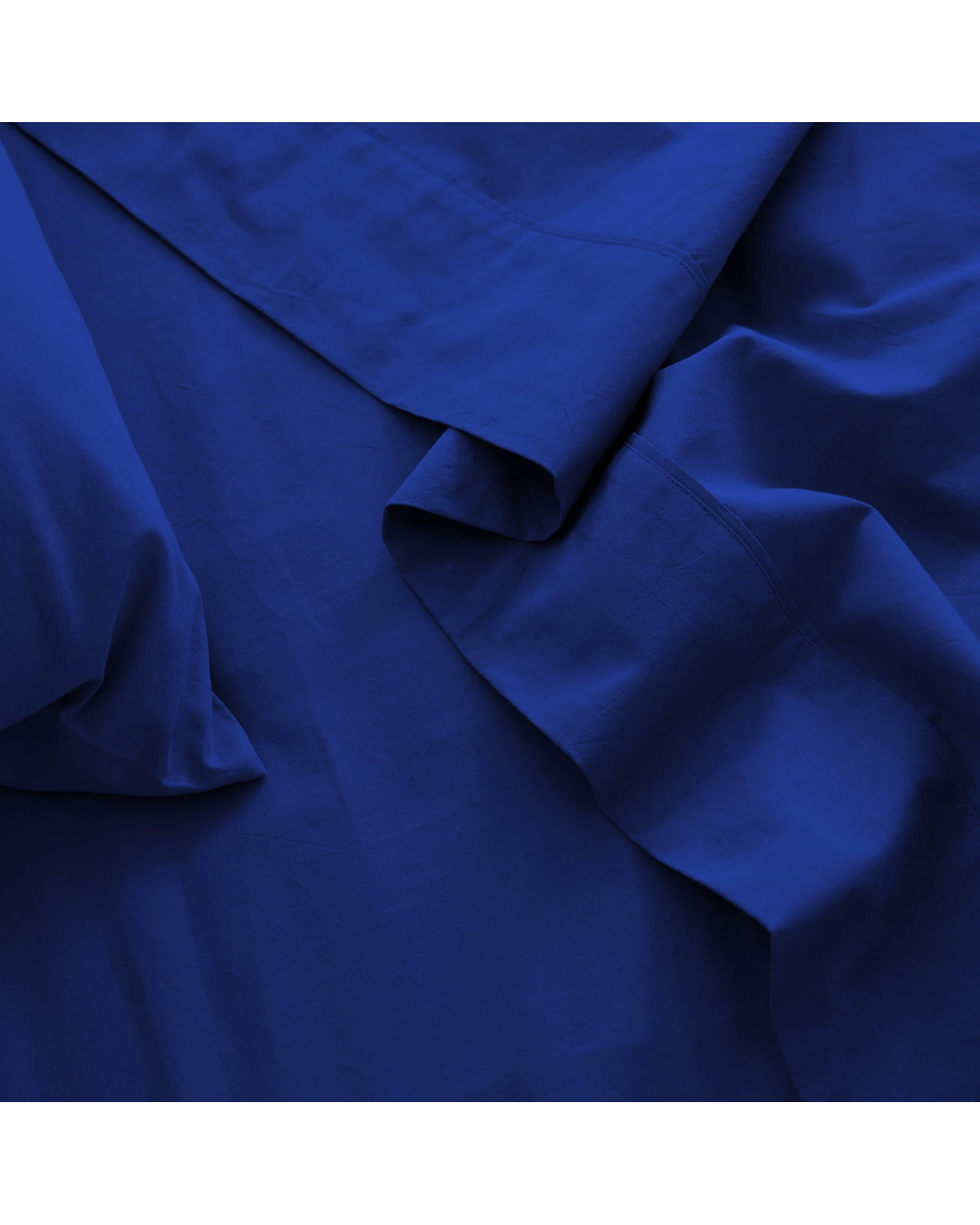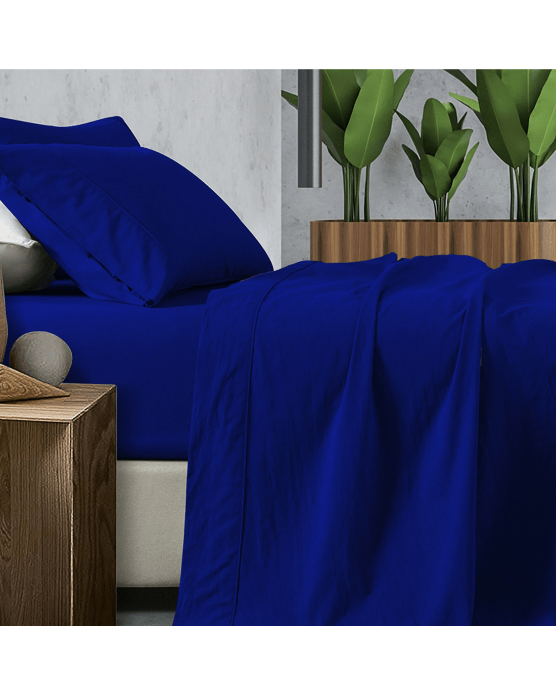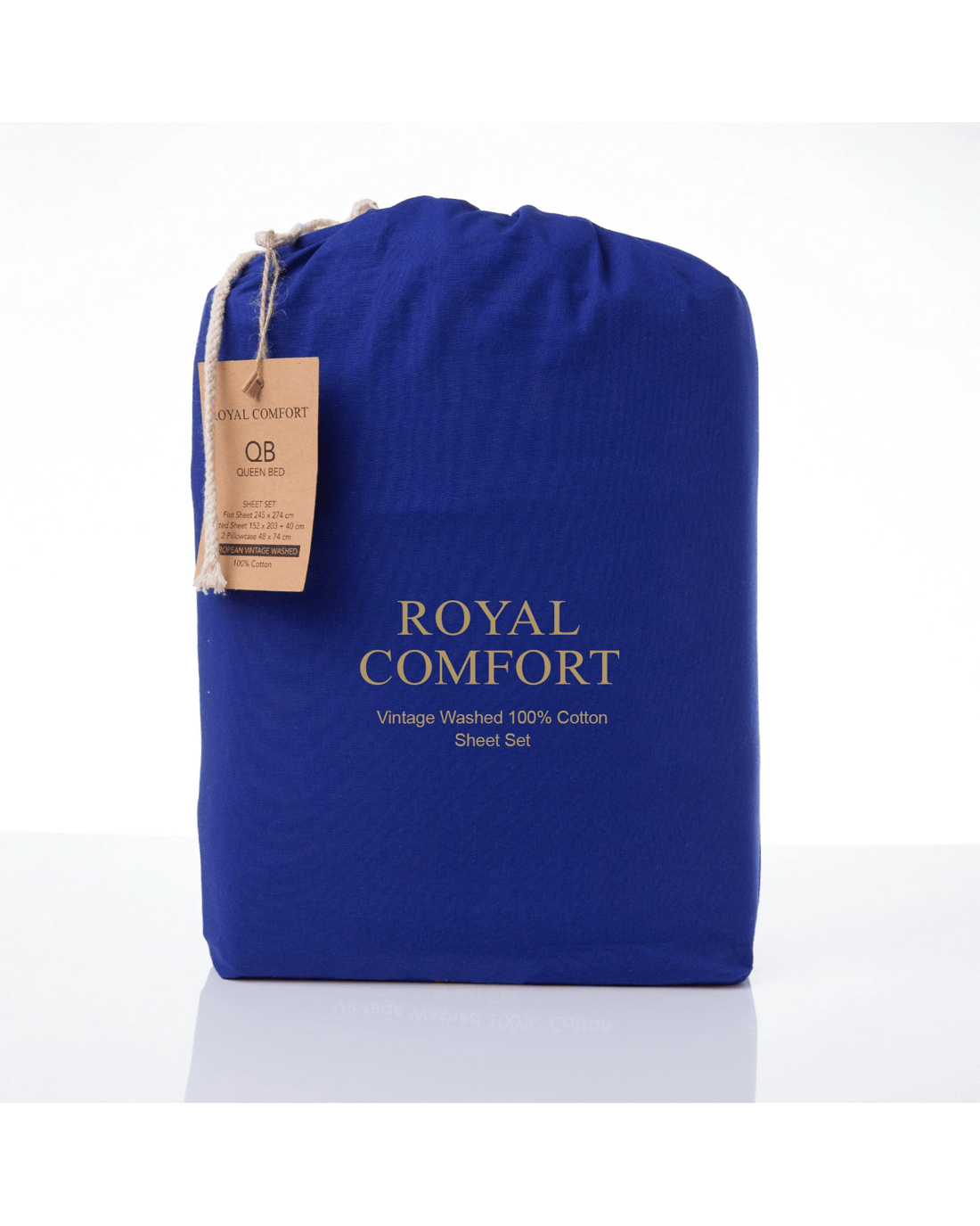 Sold by ABM GlobalRoyal Comfort Vintage Wash 100% Cotton Sheet Set Fitted Flat Sheet Pillowcases - Double Bed - Blue