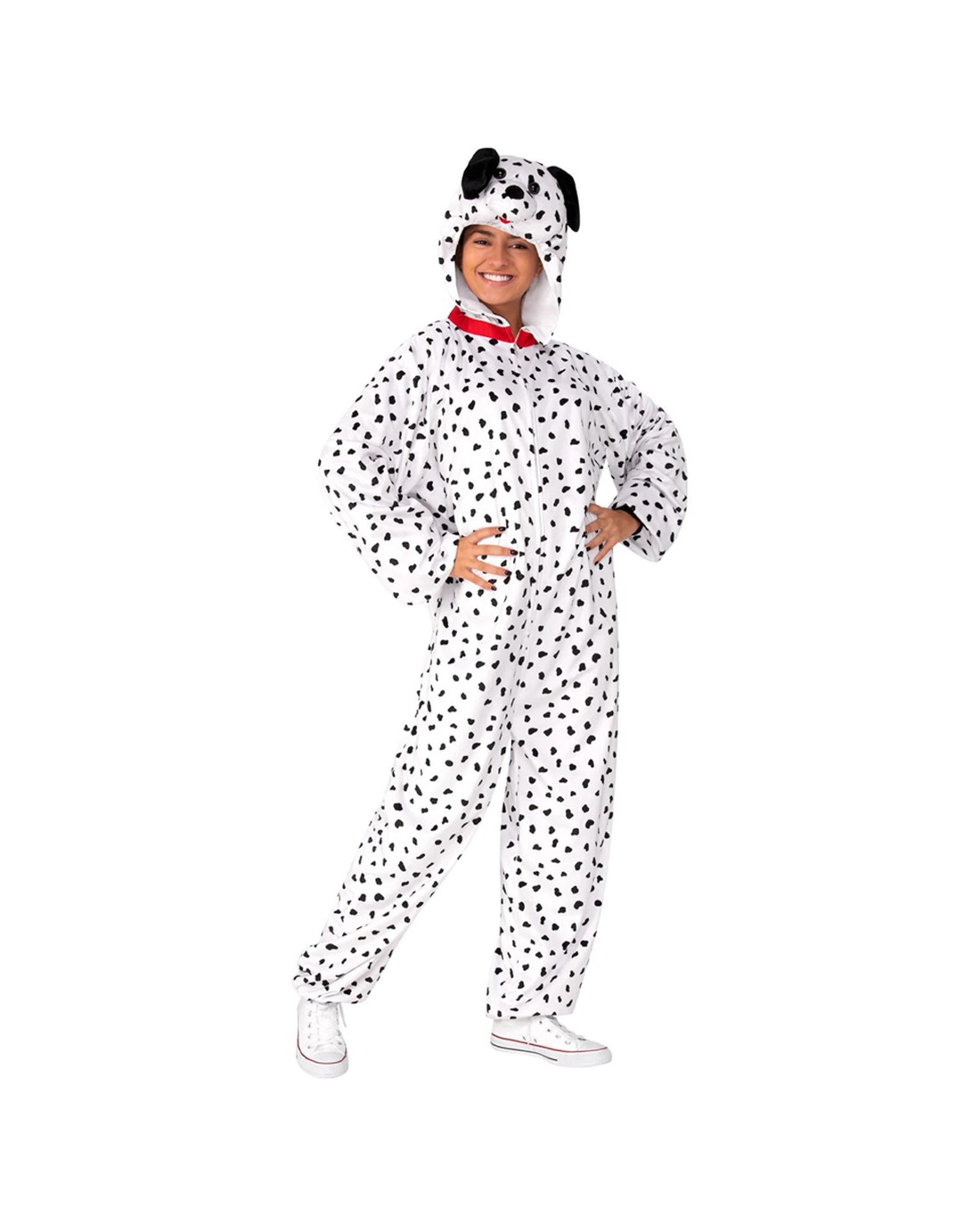 The RUBIES Dalmatian Furry One Piece Costume is designed for adults who want to dress up as a playful Dalmatian dog. Perfect for fancy dress parties, Halloween, or casual fun, this costume offers a comfortable and authentic look with its soft plush material and detailed design. The costume features a full-length plush hooded jumpsuit with a front zipper closure and an attached tail, making it easy to wear and complete the Dalmatian appearance. The hood includes 3D animal facial features and ears, adding a realistic touch. A red collar is attached for added detail. This unisex costume is suitable for adults in size L-XL, providing a relaxed fit for all-day comfort. Key Features: Authentic Dalmatian Appearance: Includes a plush hood with 3D facial features and ears for a realistic dog look Comfortable Wear: Made from soft plush fabric with a relaxed fit for extended comfort Easy to Dress and Complete Look: Features a front zipper closure and attached tail Unisex and Versatile Fit: Designed for adults in size L-XL, suitable for all genders Official Rubie's Product: Ensures quality and authenticity for dress-up fun Specifications: Brand: RUBIES Product Type: Costume Design: Hooded jumpsuit with attached tail and 3D facial features Size: L-XL Unisex: Yes Includes: Full costume with hood, tail, and collar (shoes not included)