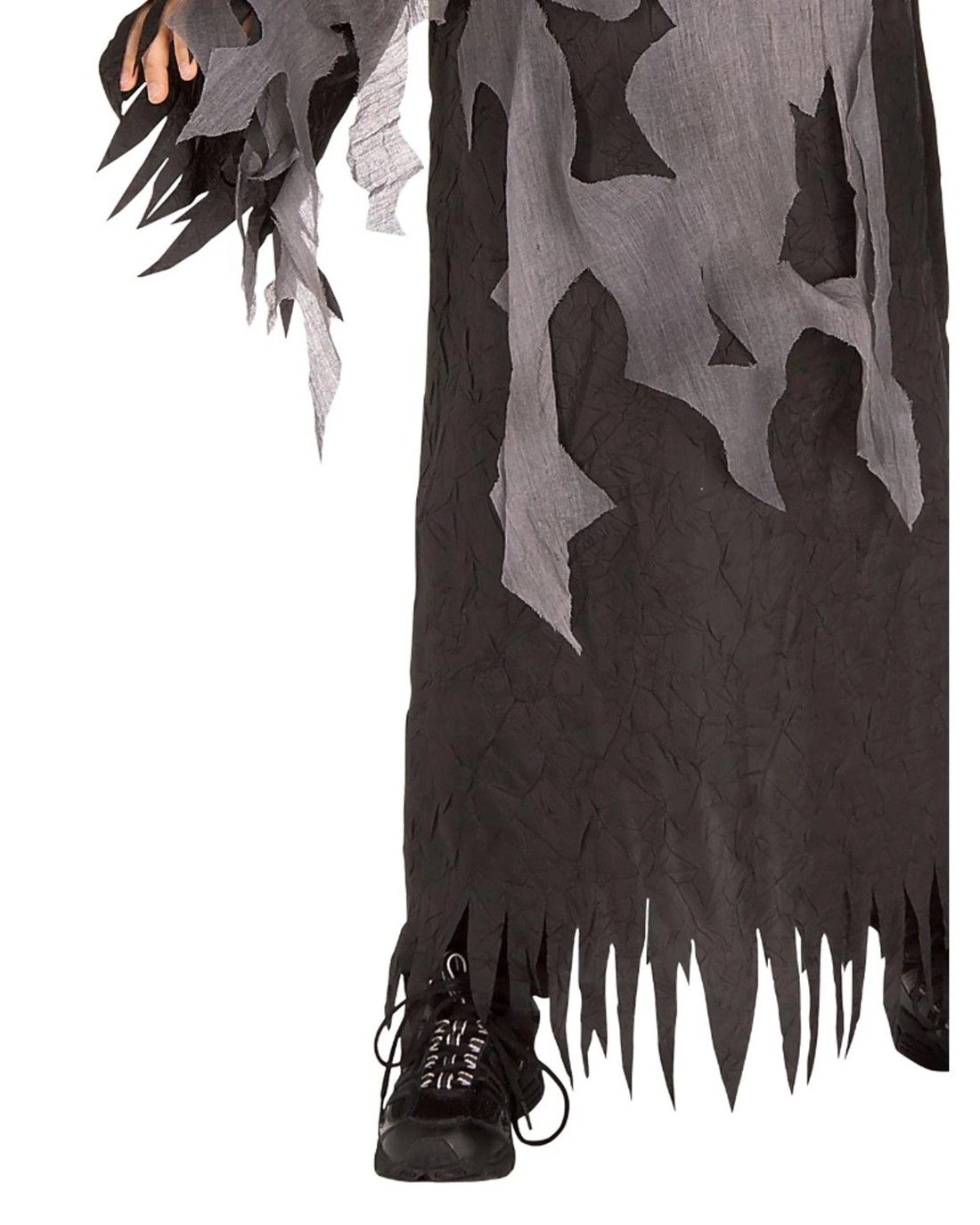 - Full length black hooded robe with jaggered hemline and tattered hood and featuring felt overlay fabric with tears and rips