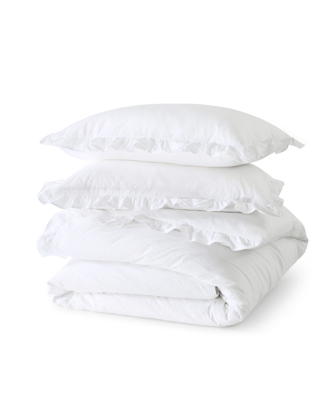 Add a touch of timeless charm to your bedroom with this Ruffle Cotton Quilt Cover Set. Crafted from soft cotton, it features delicate ruffle detailing for an elegant, textured look and comfortable, restful sleep.
