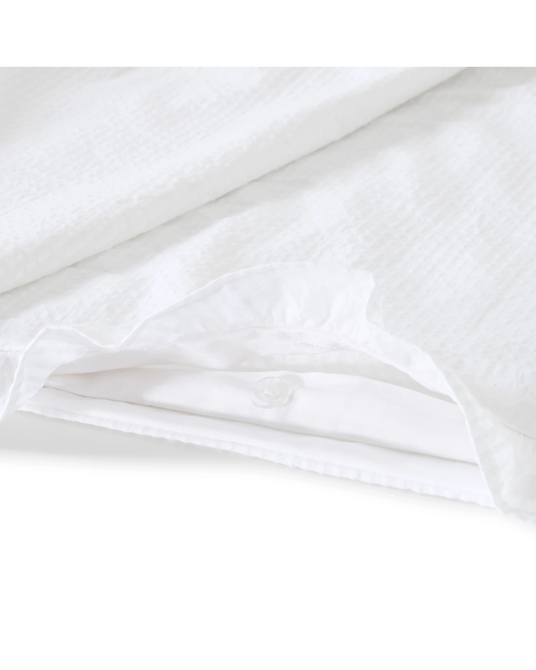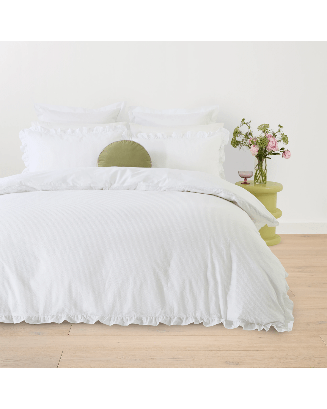 Add a touch of timeless charm to your bedroom with this Ruffle Cotton Quilt Cover Set. Crafted from soft cotton, it features delicate ruffle detailing for an elegant, textured look and comfortable, restful sleep.