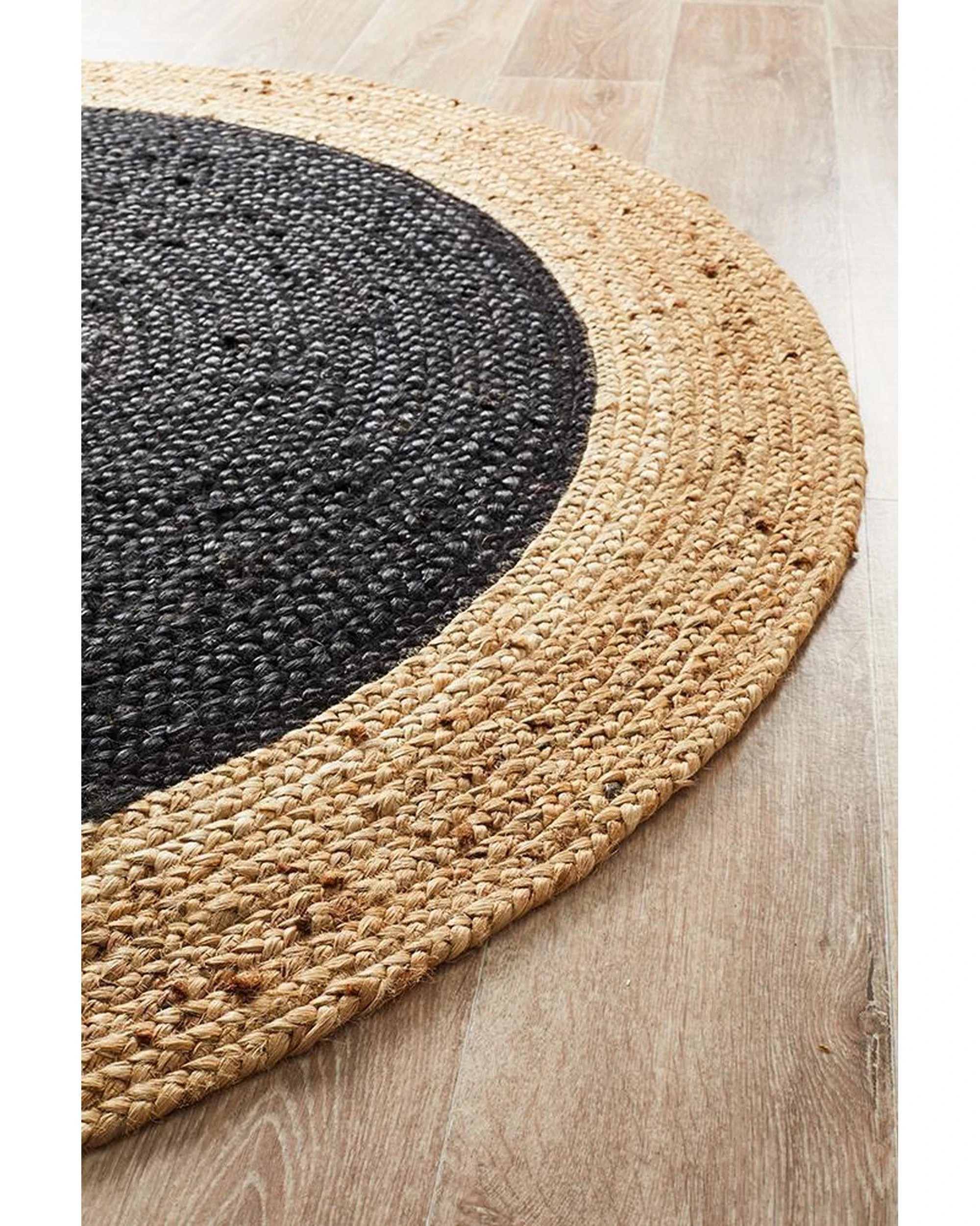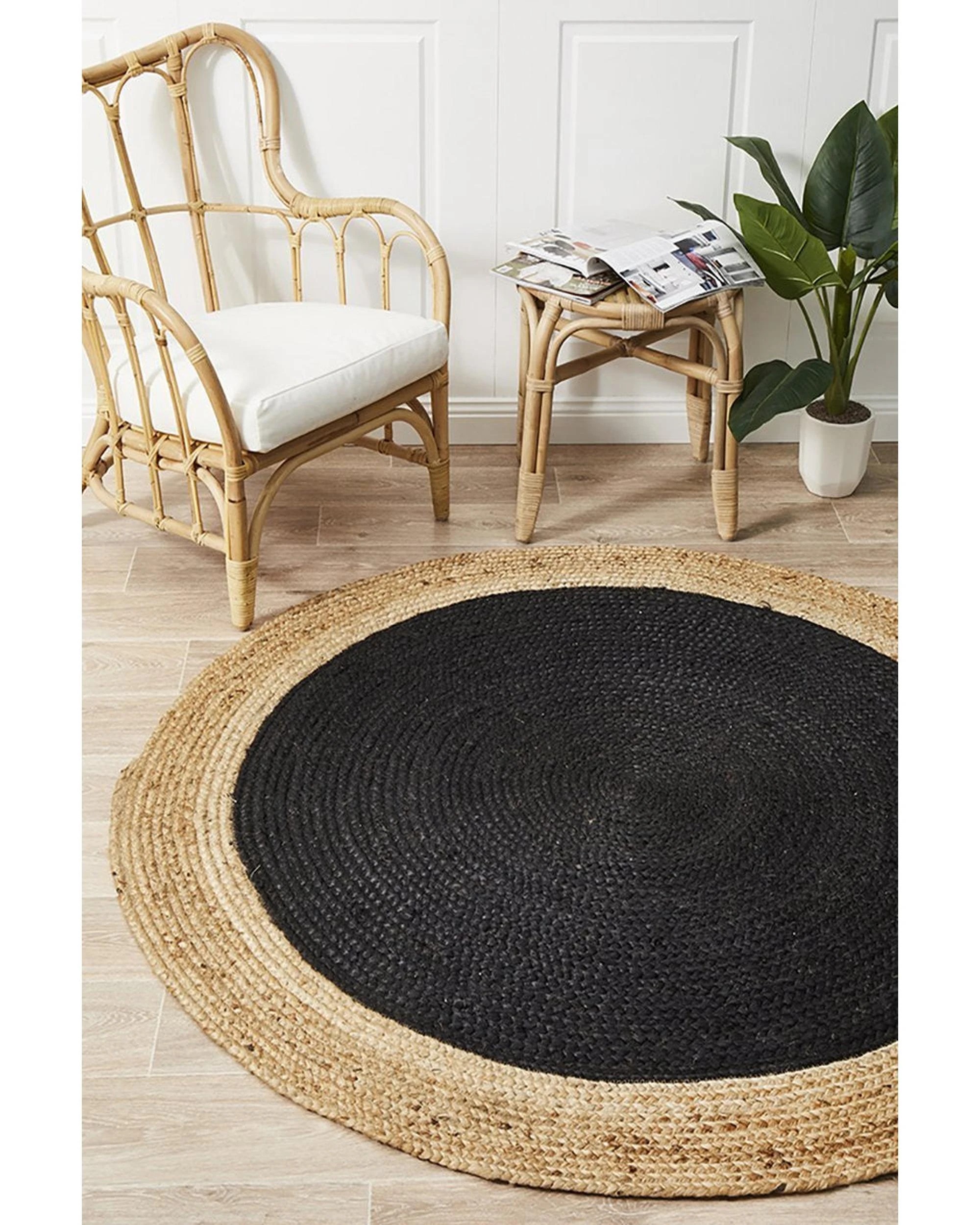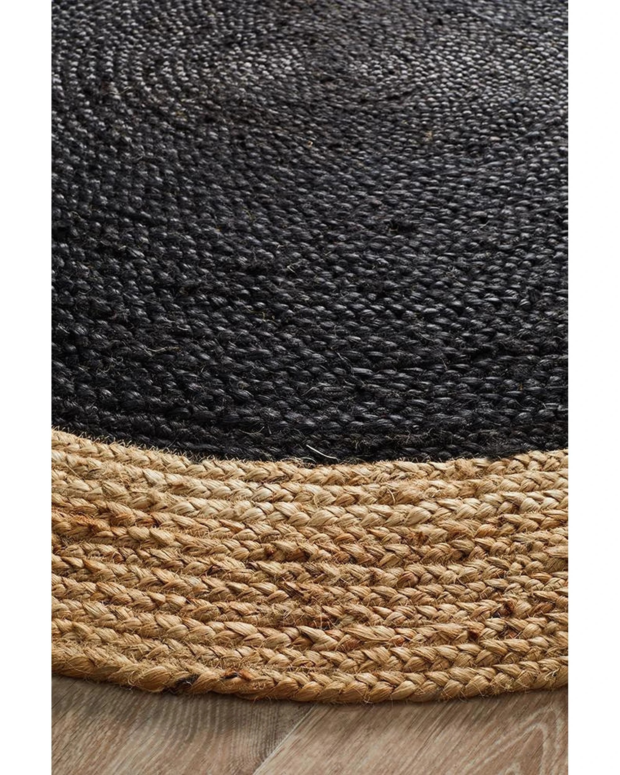 Rug Culture Atrium Polo Round, Handwoven Jute Rug — Black, Reversible - Black