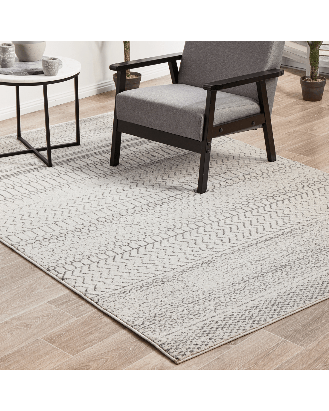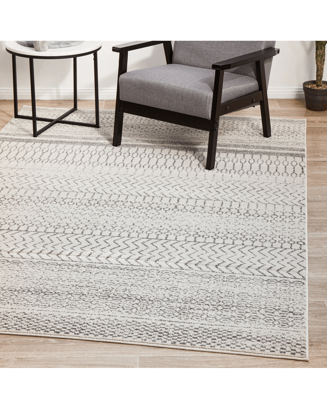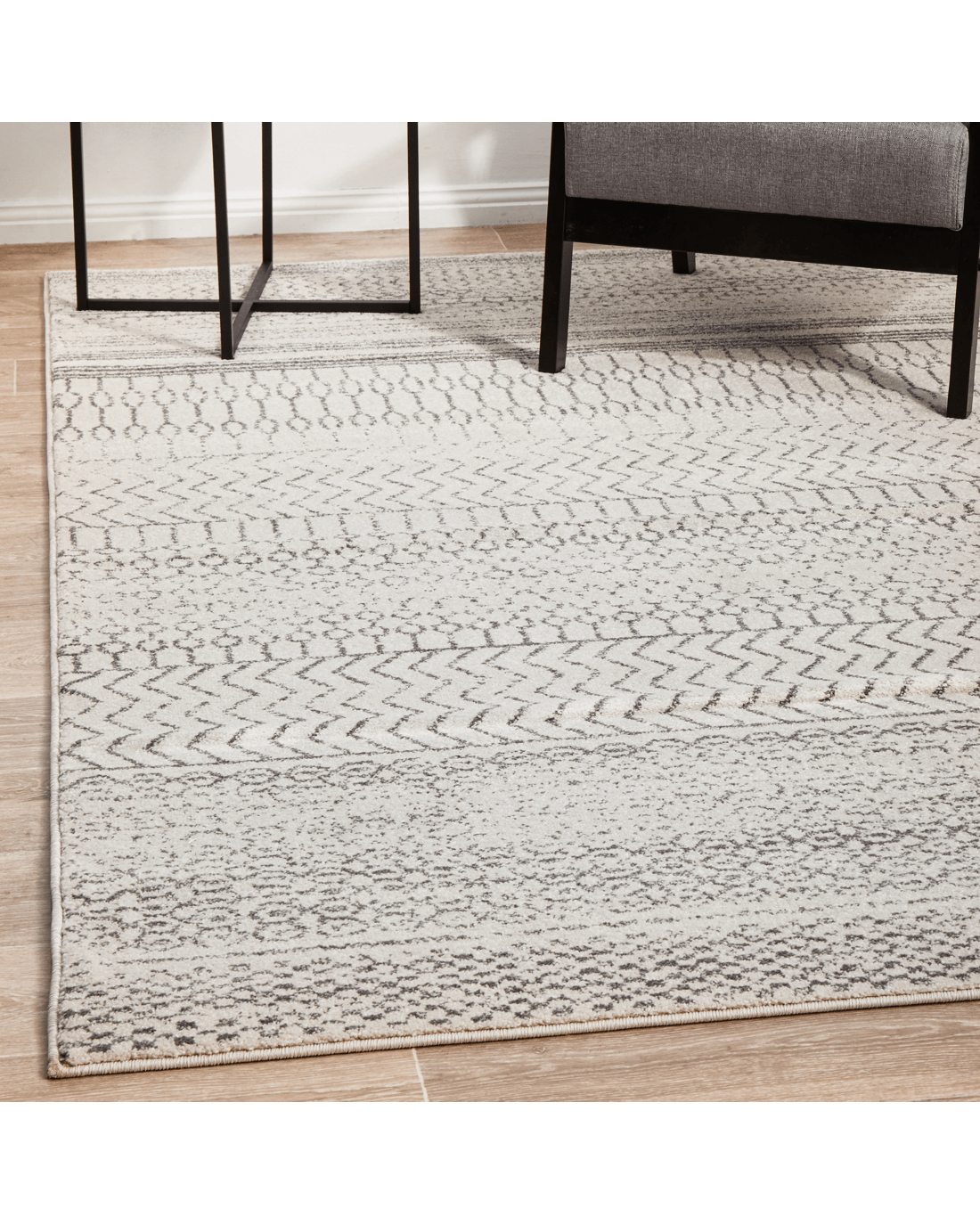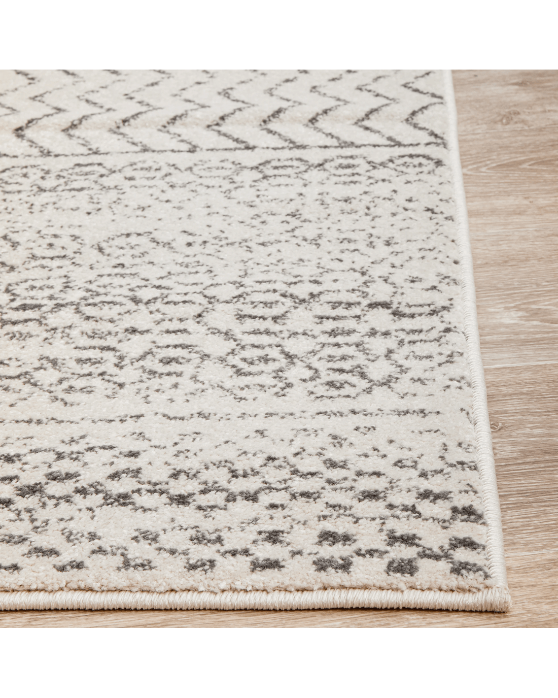 Perfectly on trend for tribal, this monochromatic palette and vintage design meet to create a rug with elegance and subtlety. Power loomed with a polypropylene pile, this rug is non-shed and easy care. These rugs offer style, versatility and are available in rectangles, rounds, and runners in a large variety of sizes.