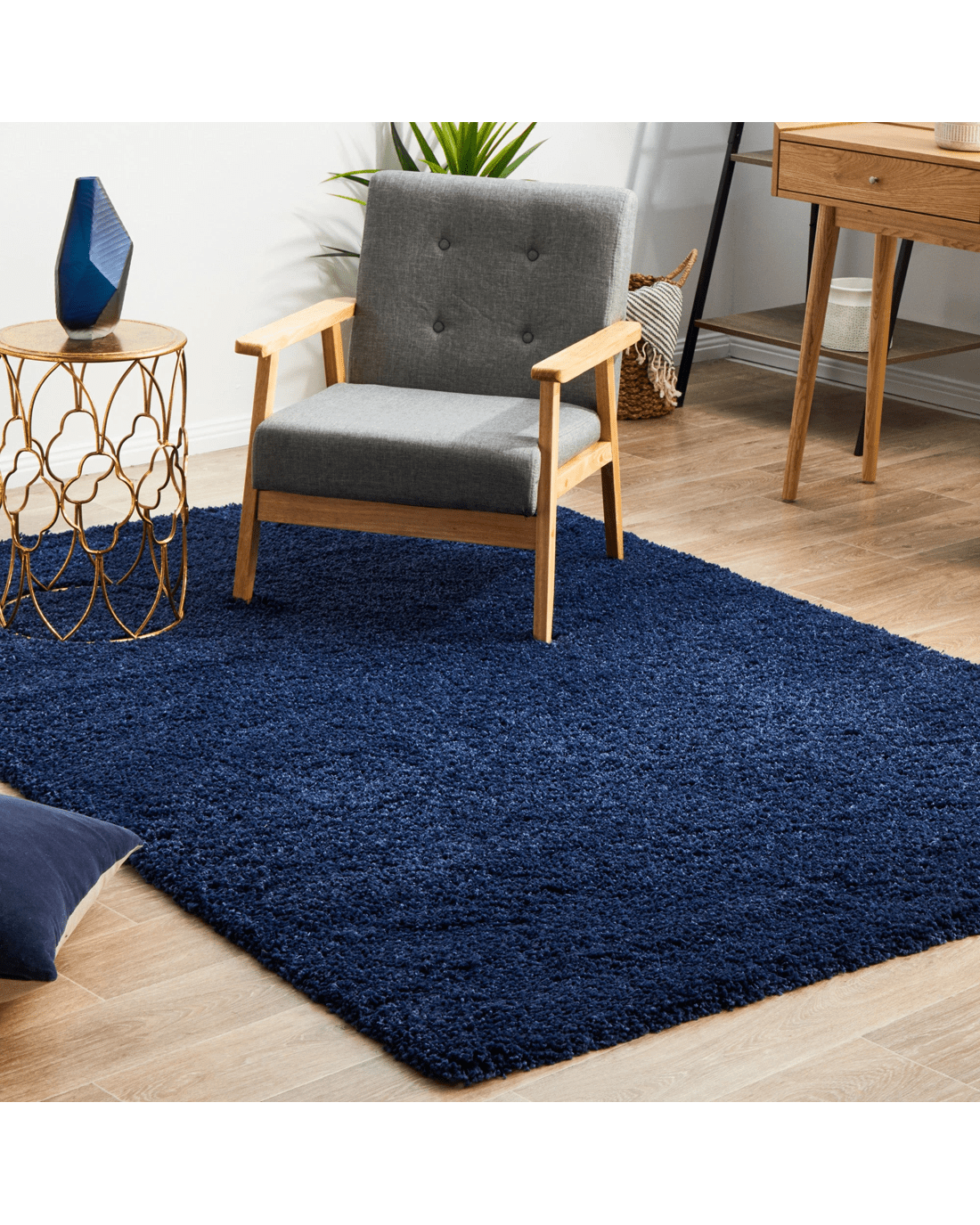 Rug Culture Laguna Denim Shaggy Rug - 40 mm Pile, Navy Blue, Polypropylene (Made in Turkey) - Blue