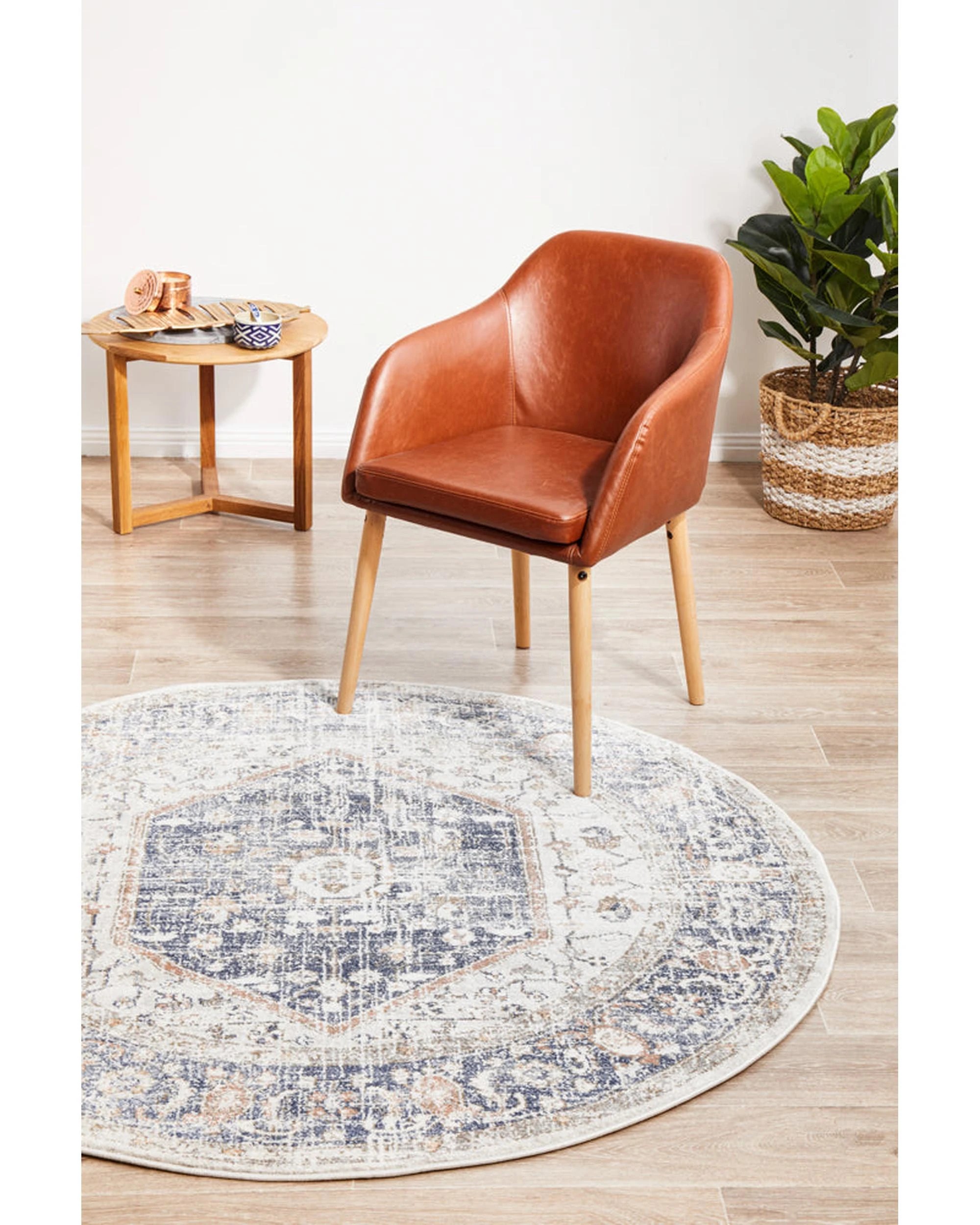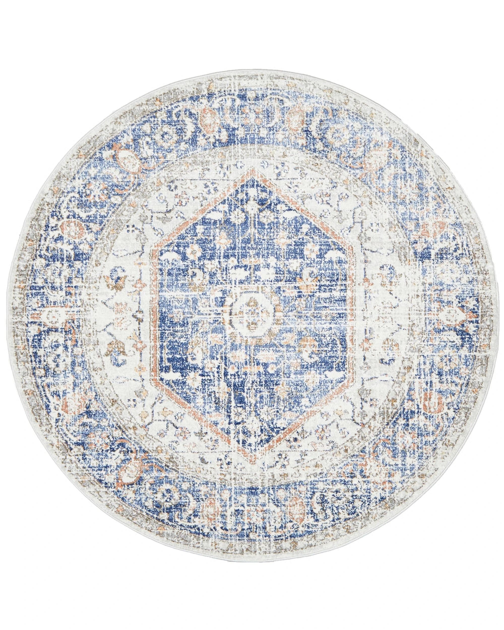 RUG CULTURE Mayfair Lorissa Round Rug, Ocean Blue & Peach, 10 mm Polypropylene, Power Loomed, Made in Turkey - Blue