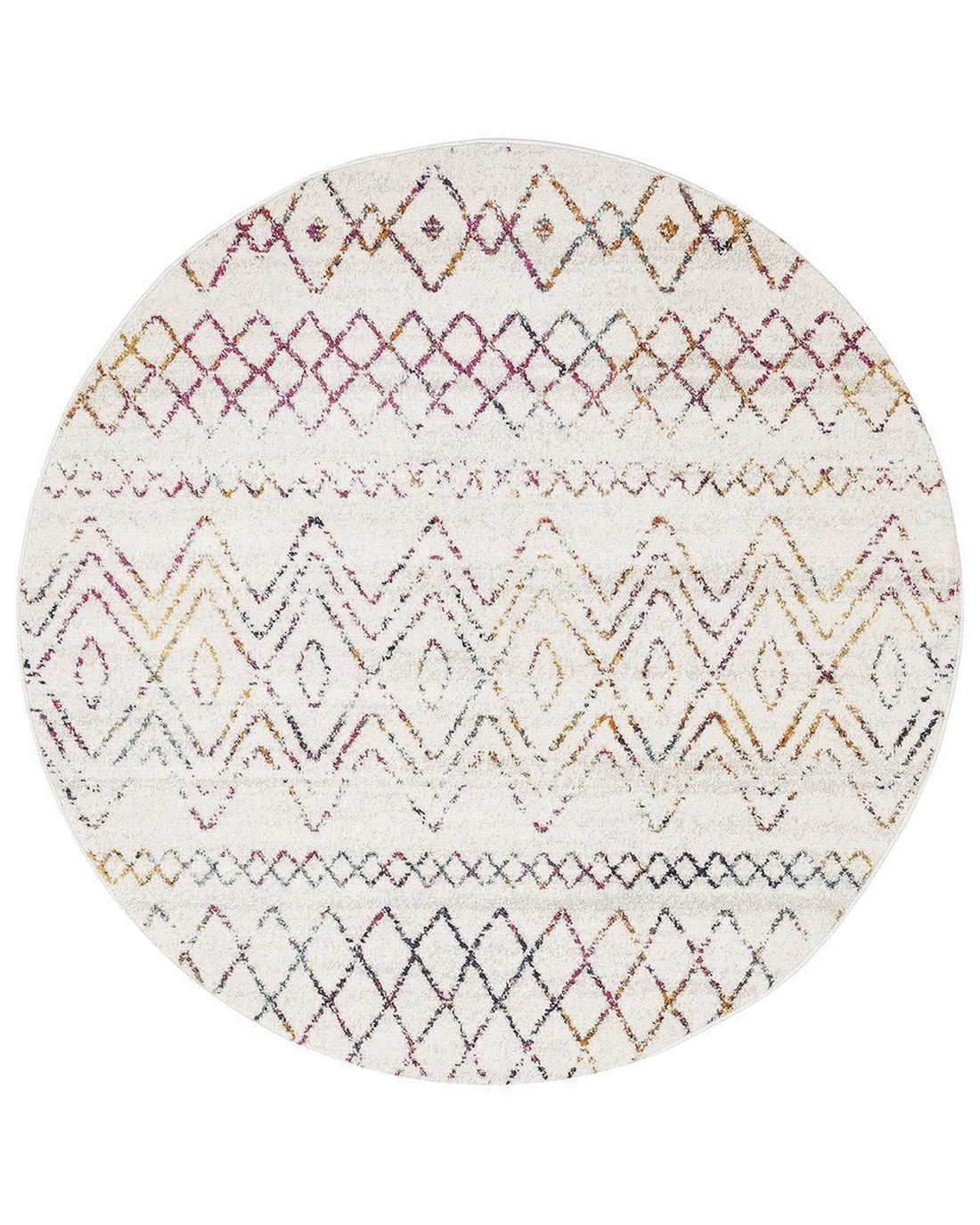 Rug Culture Oasis Nadia Round Rug - Multi Rustic Tribal, 10mm Polypropylene (Made in Turkey) - Multi