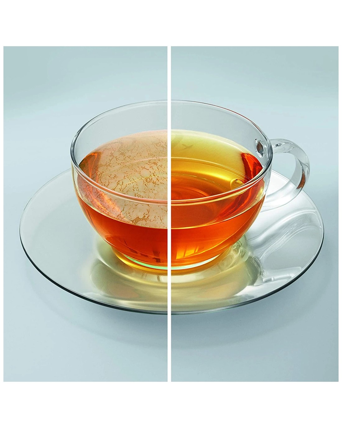 The Russell Hobbs Brita Glass Kettle is designed for consumers who value pure and great tasting hot beverages. This kettle features a built-in Brita water filter system that reduces limescale, chlorine, copper, and lead, ensuring every cup is cleaner and clearer. Its modern transparent glass finish allows you to monitor water levels easily and enjoy the illuminated boiling indicator. The kettle is equipped with a filter replacement reminder to help maintain optimal water quality, as well as a generous capacity for multiple cups of tea or coffee.
