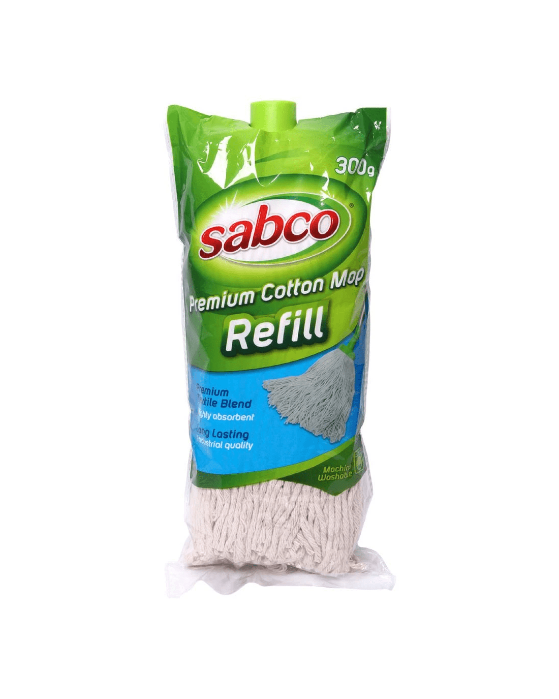 This Sabco 300g Cotton Mop Refill is ideal for use with the Sabco Cotton Mop. It is made from a premium cotton blend that is highly absorbent for drier, streak-free surfaces.