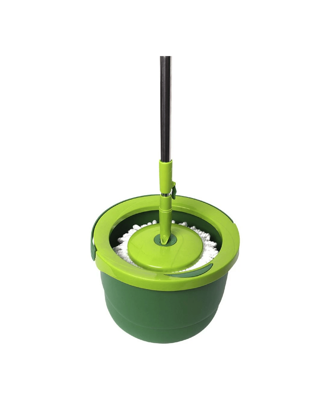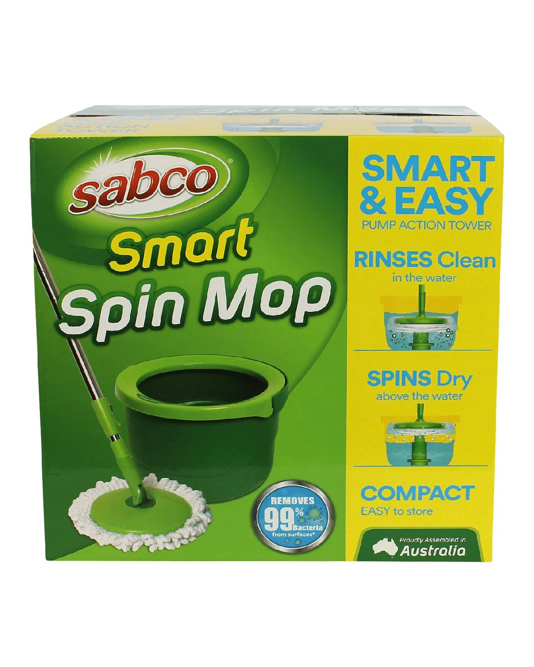 This Sabco Smart Spin Mop and Bucket Set is a household-grade product that has a smart and compact design which provides ease of storage. The two-level tower bucket system rinses the mop in water at the bottom level and wrings above water at the top level, providing a dry and streak-free finish for your floors.