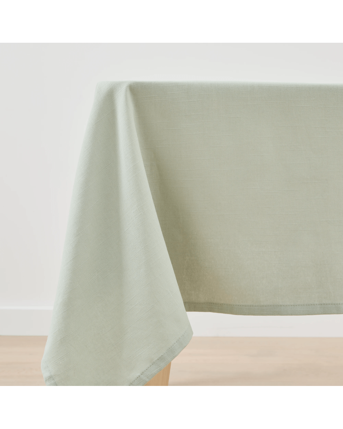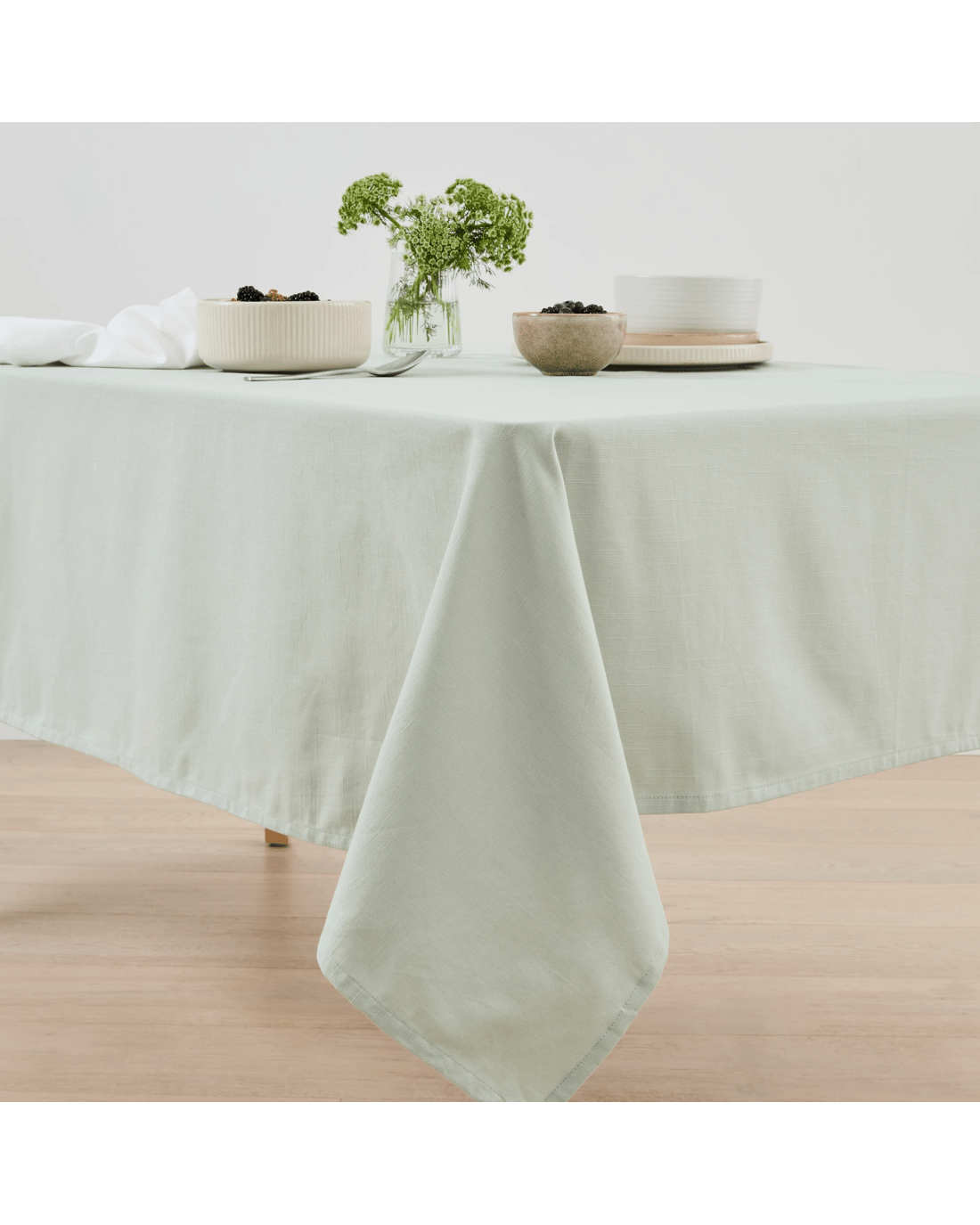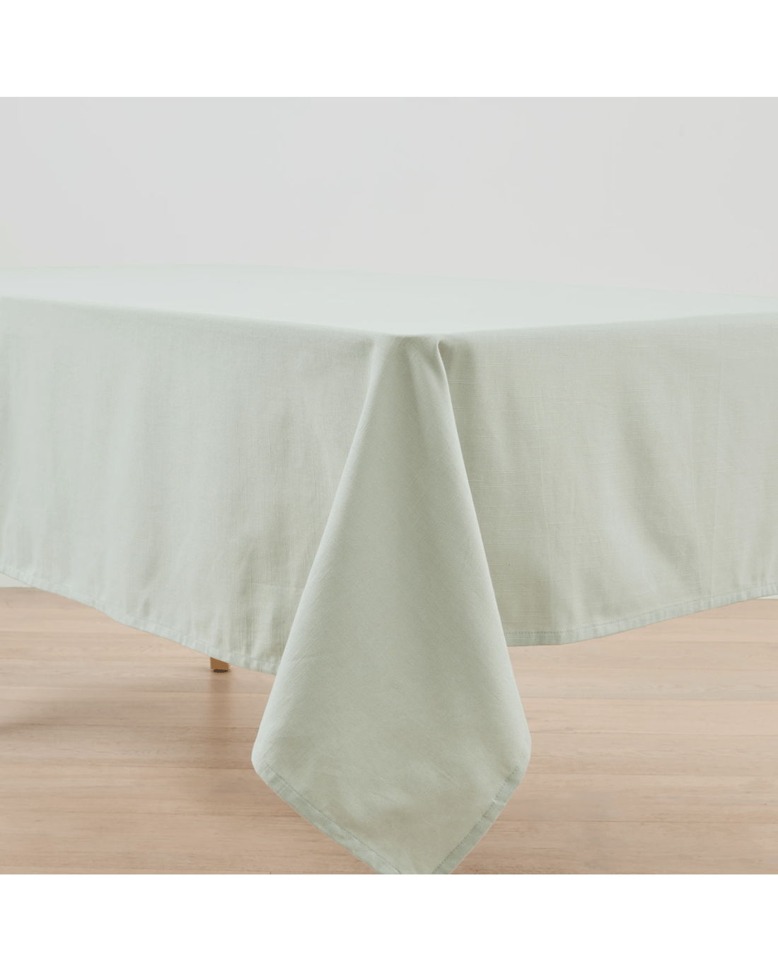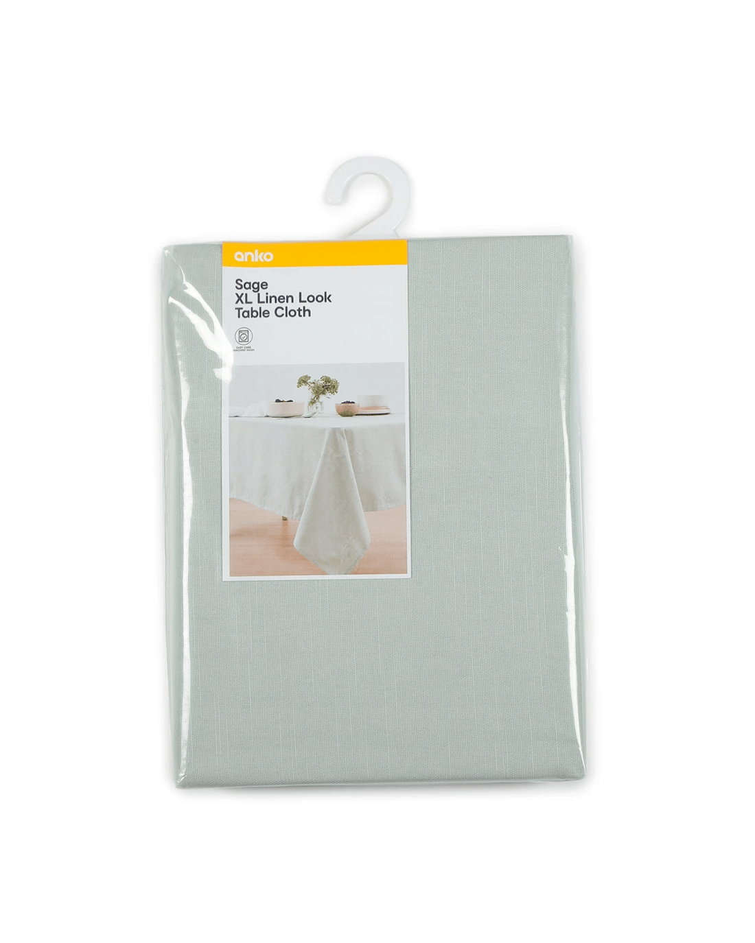 Elevate your dining room decor with this Sage Extra Large Linen Look Table Cloth. It is perfect for everyday use or special gatherings and will add a refreshing touch to your space.