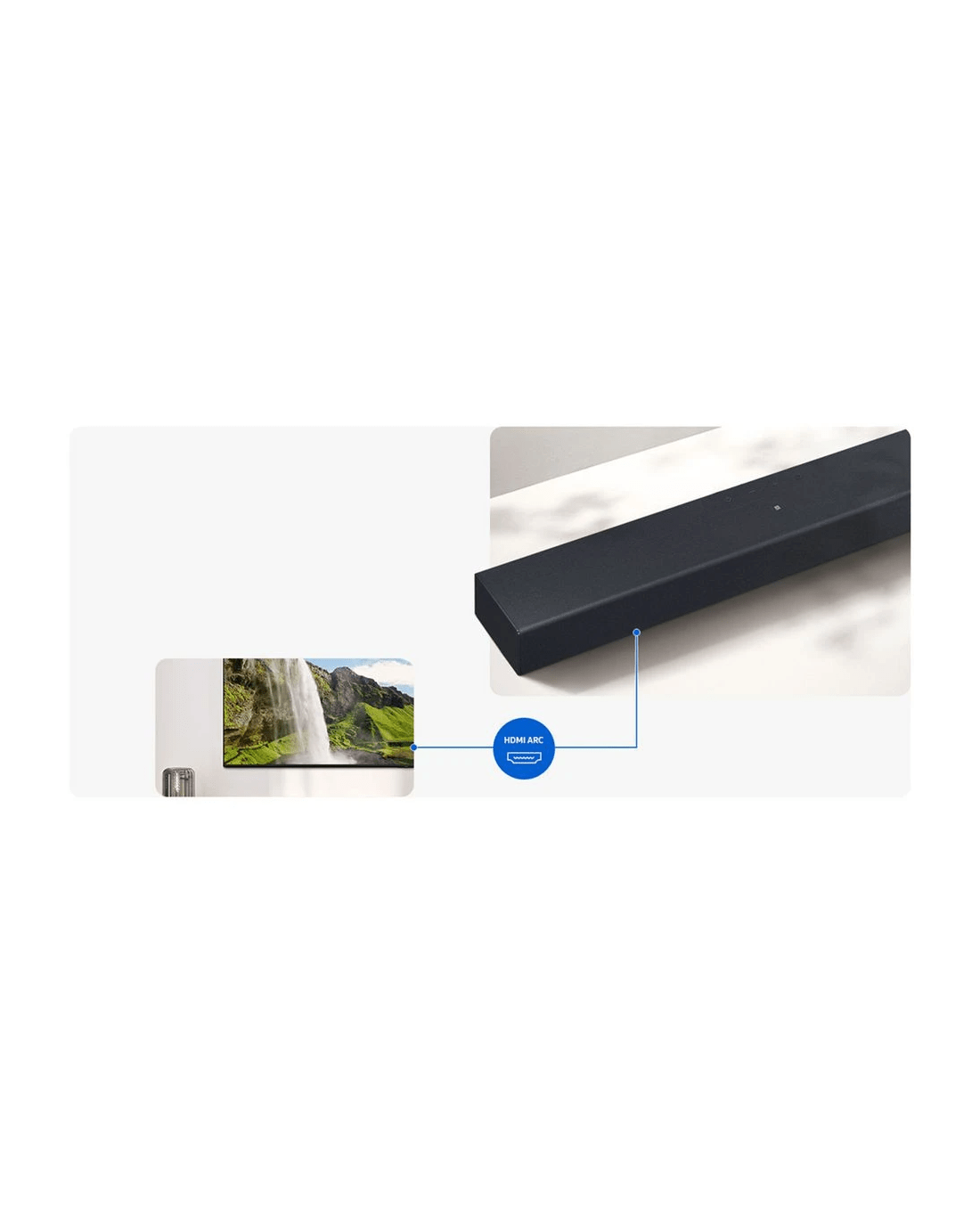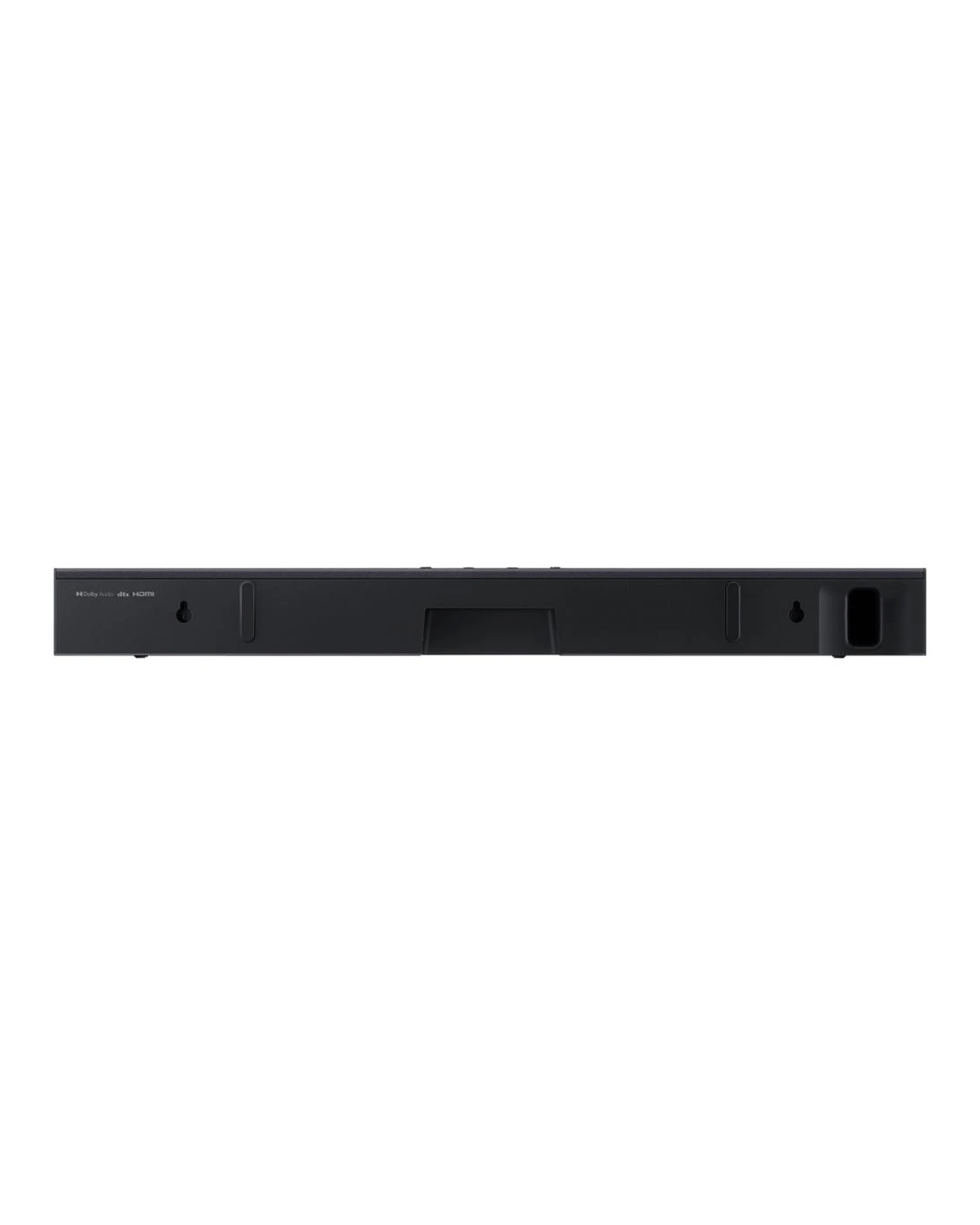 Enhance your home entertainment with this Samsung Soundbar, delivering rich, room-filling sound in a sleek, compact design. With a built-in woofer, wireless connectivity, and voice enhancement features, this soundbar is designed to simplify your setup while elevating your audio experience.