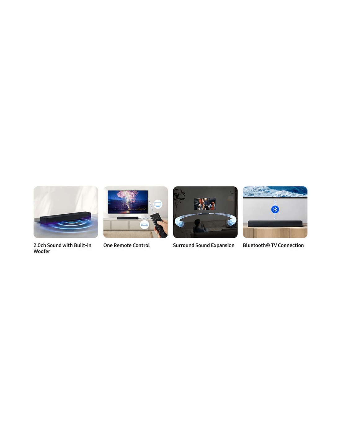 - Surround Sound Expansion technology creates a wider optimal listening zone for immersive, room-filling audio.
