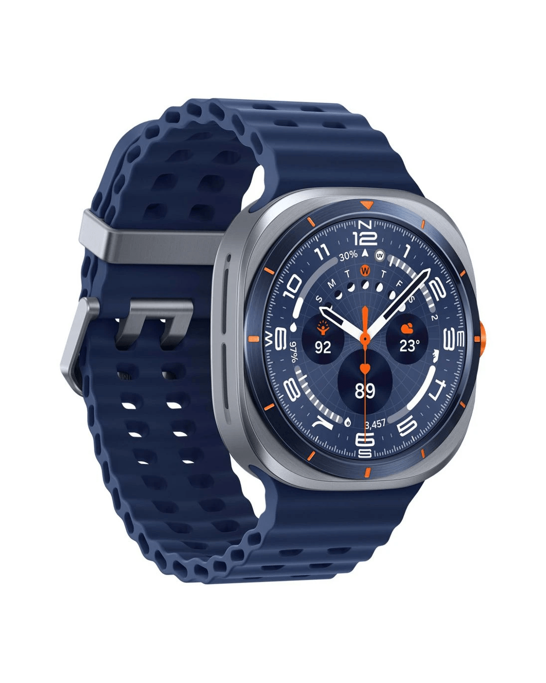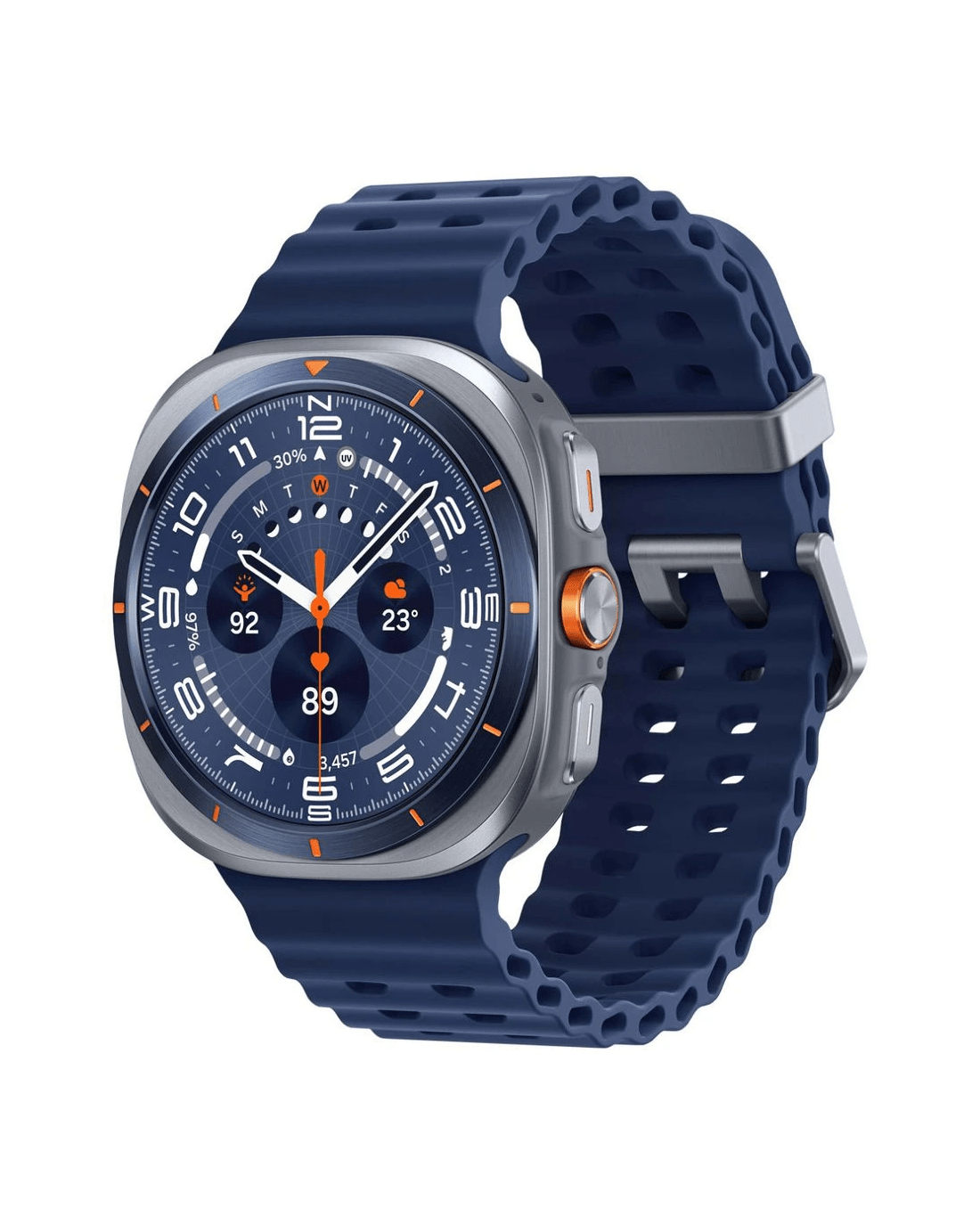 This Samsung Galaxy Watch Ultra has been built for the wild and is the ultimate adventure companion. It's ultra precise, ultra intelligent, ultra long-lasting, and it’s packed full of next-gen technology with the longest lasting battery yet. Plus, you can go from city, to surf, to sand, to summit and reach peak performance with advanced tracking powered by Galaxy AI.