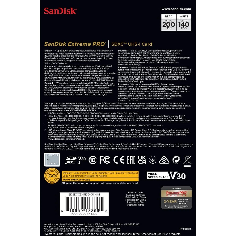 SanDisk 512GB Extreme Pro SDXC Memory Card