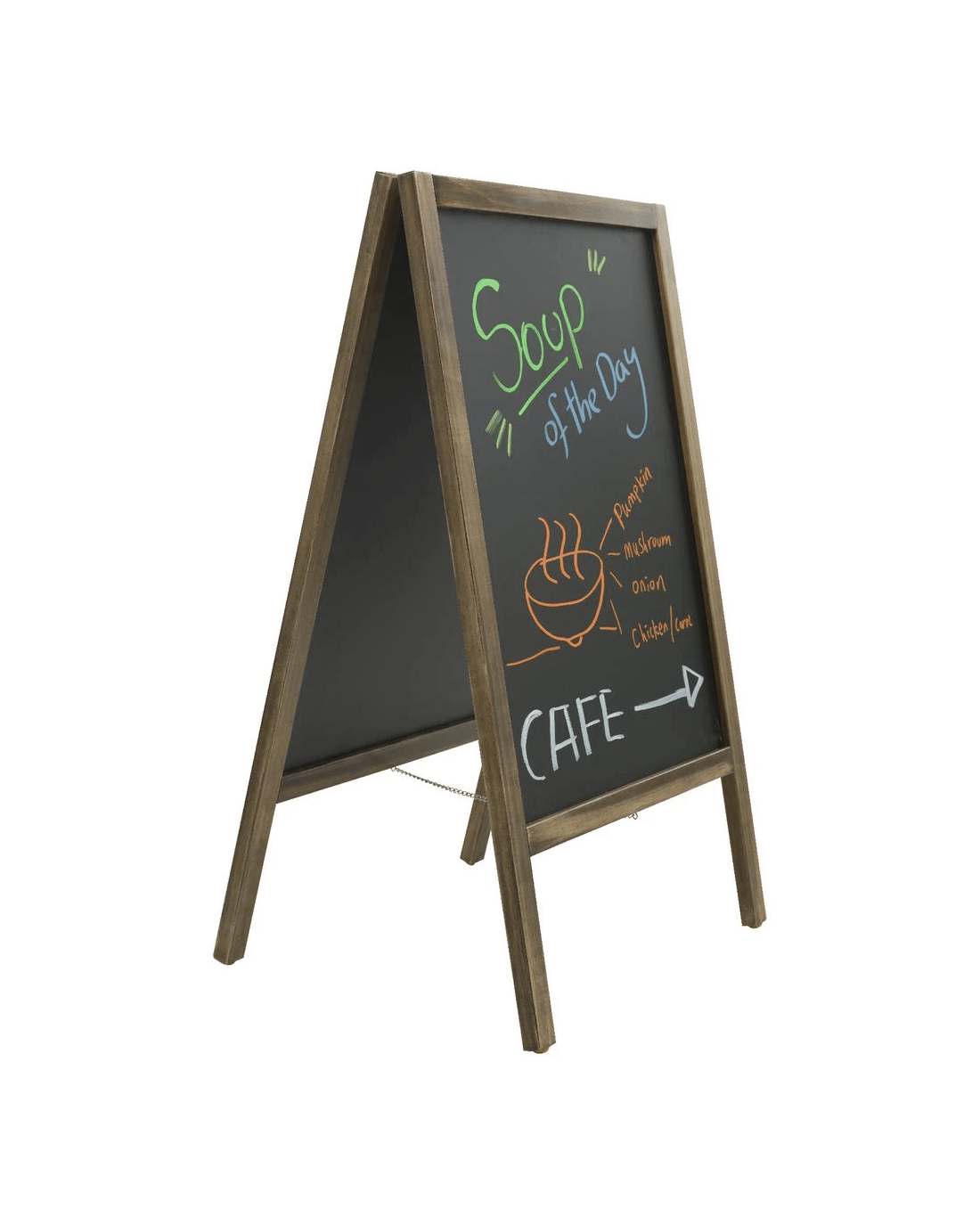 This Sandleford A-Frame Blackboard is a great way to communicate messages with customers and foot traffic. The frame has a sturdy pine wood construction with a metal connector for enhanced durability and anti slip feet so that it is a safer option in public spaces.