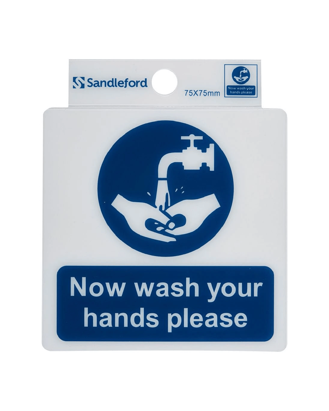 Sold by OfficeworksSandleford Now Wash Your Hands Self Adhesive Sign 75 x 75mm