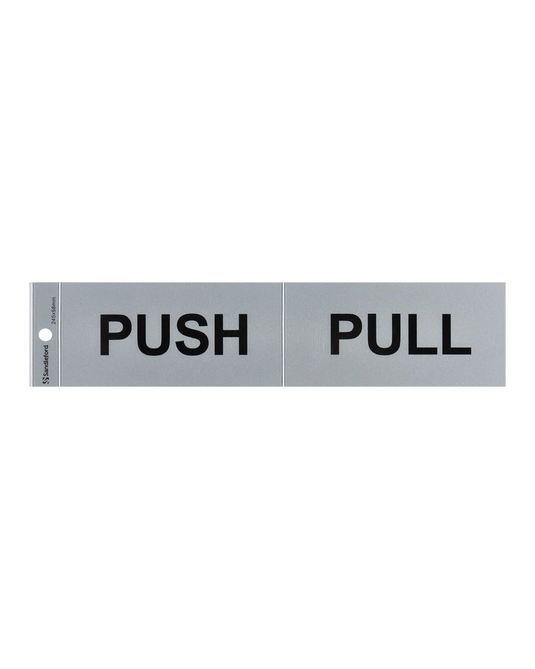 - The sign measures 245 x 58 mm.