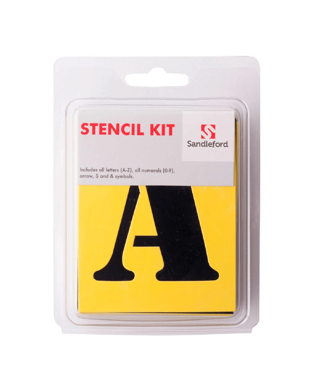 - The pack includes stencils for the entire alphabet, the numbers 0 to 9 and an assortment of symbols including &, $ and an arrow.