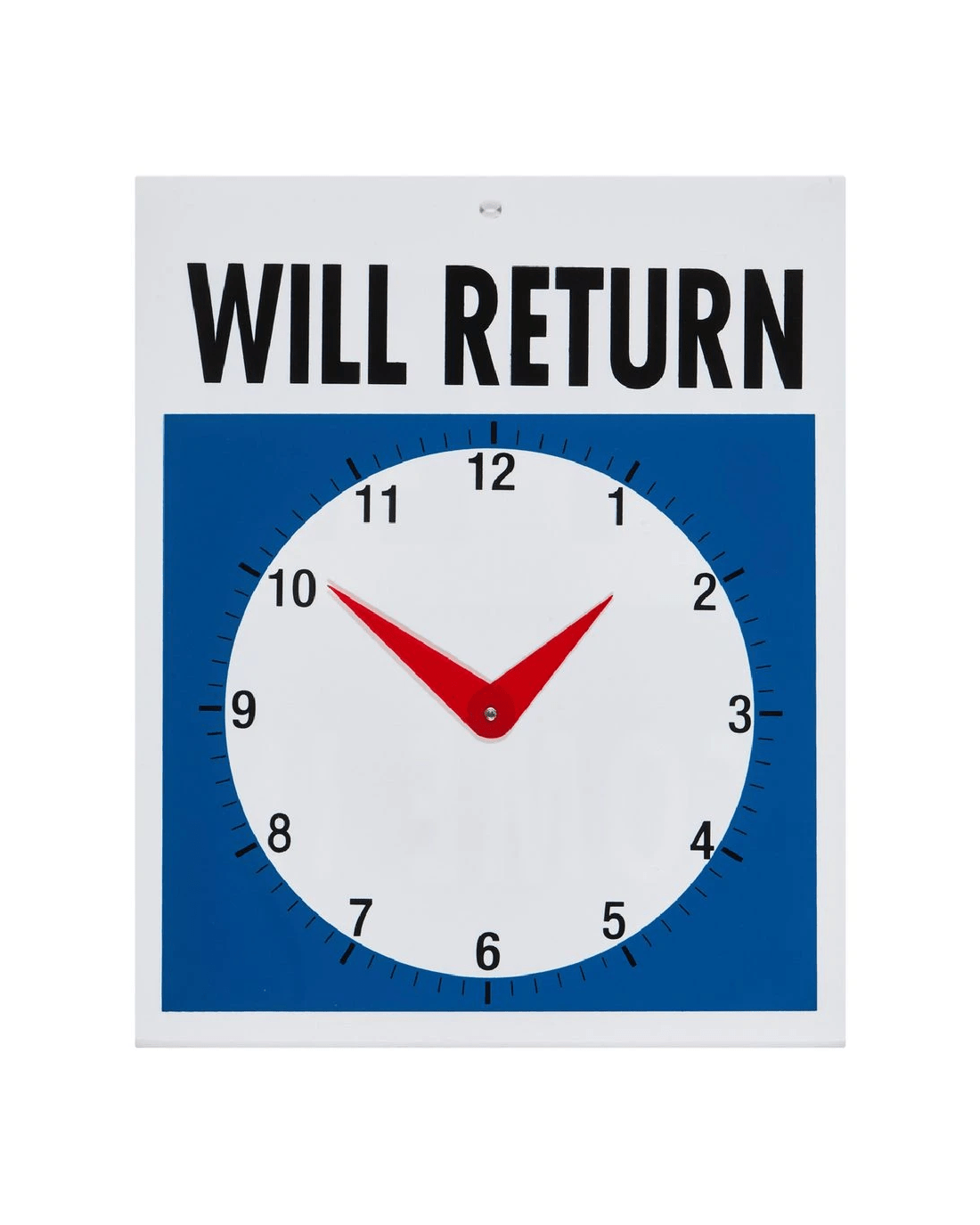 This Sandleford Will Return Sign is perfect for displaying inside or outside your business to let people know when you're returning. It has a durable, UV resistant construction and comes with pre-drilled corner holes so you'll be able to attach it to the wall or door right away.