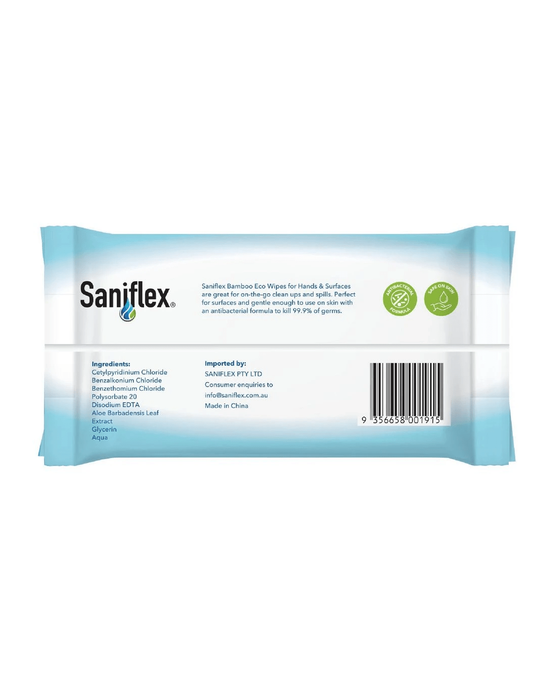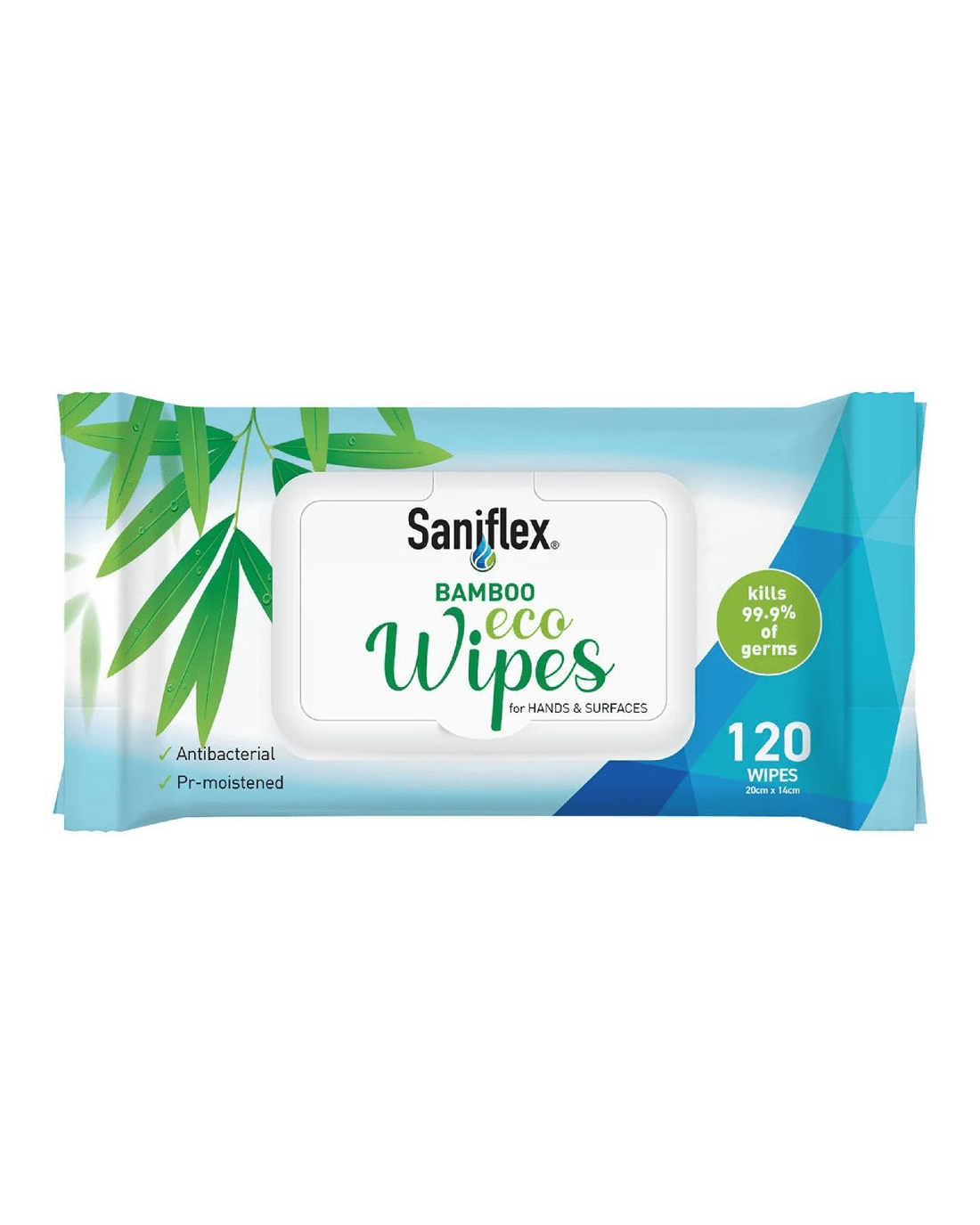 These Saniflex Antibacterial Bamboo Hand and Surface Wipes offer a solution to your everyday cleaning needs. Made from bamboo fibre, they're suitable for surfaces and gentle enough to use on skin. The antibacterial formula kills up to 99.9% of germs for thorough on-the-go sanitation and cleaning.