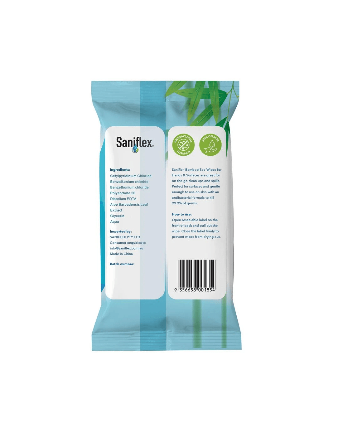 Sold by OfficeworksSaniflex Bamboo Antibacterial Hand and Surface Wipes 40 Pack