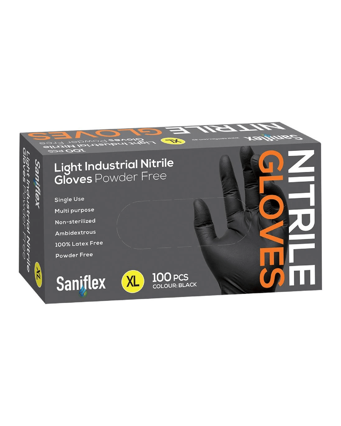 Sold by OfficeworksSaniflex Light Industrial Nitrile Gloves XL 100 Pack Black