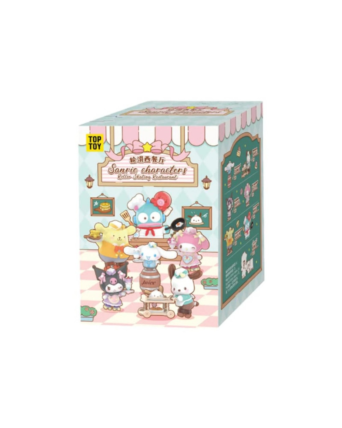 - Features various Sanrio characters in roller skating restaurant themes